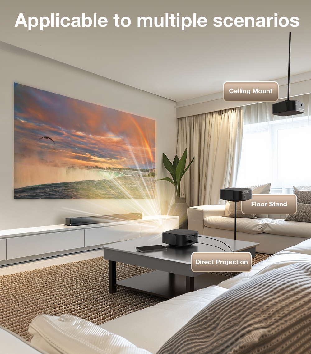 Casiris H6 ultra-lyhyt heitto 4K RGB-kolmoislaser 150-tuumainen näyttö HDR10+ Dolby Atmos