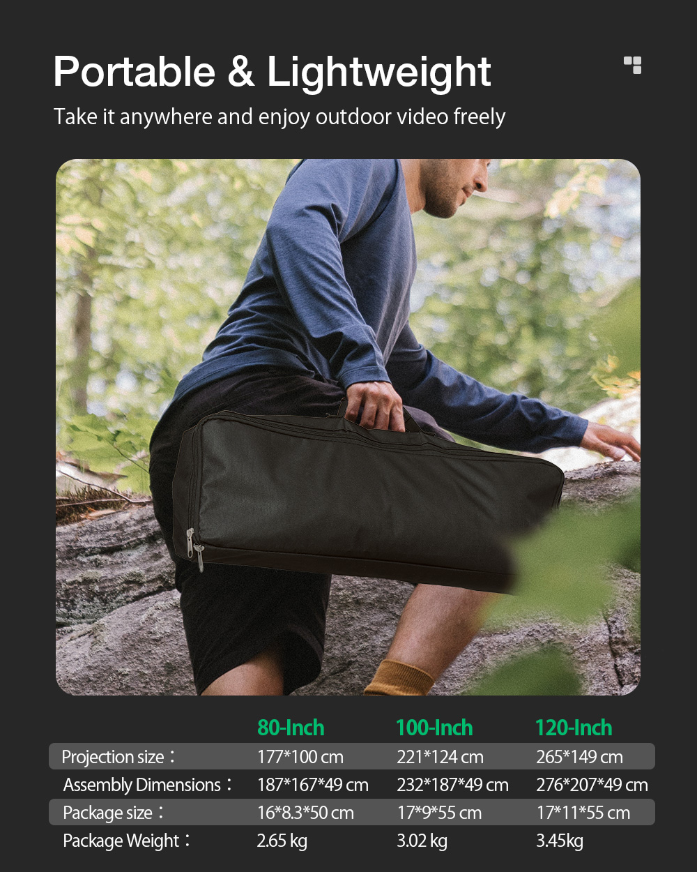 Projektorikangas jalustalla 80/100/120 tuumaa 16:9 teräväpiirto 4K: kannettava muotoilu ulkoilman katseluun