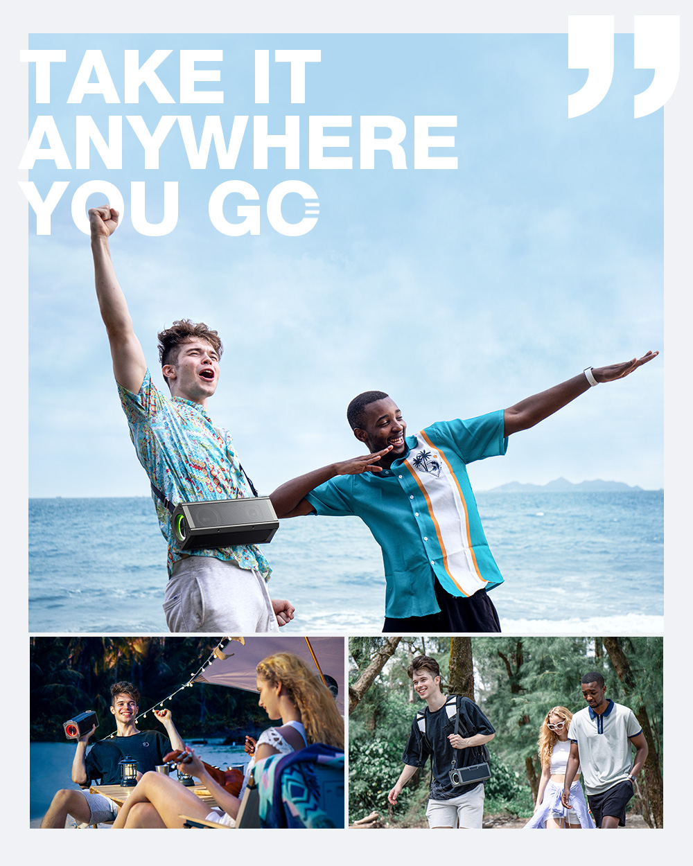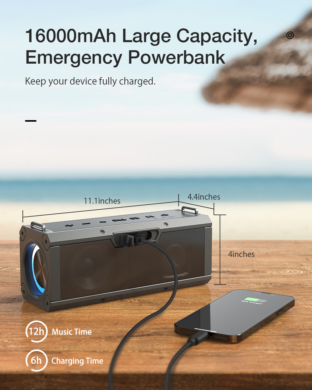 3. 16000mAh pitkä kesto – Pitkä akunkesto ja USB-hätävaralataus riittävät kaikkiin ulkoaktiviteetteihin. Kannettava Bluetooth-kaiutin, joka sopii arkeen ja retkille.