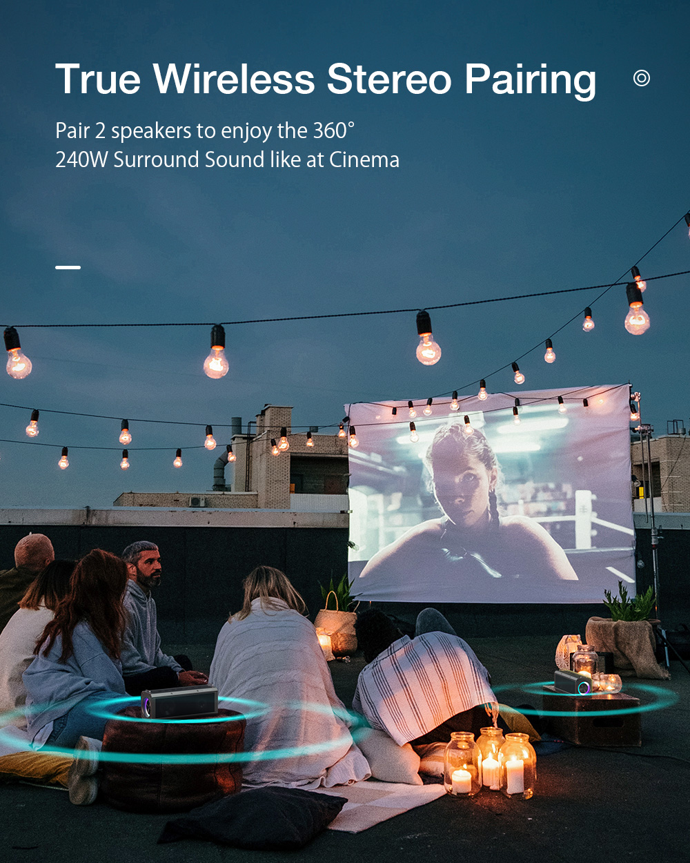 - TWS-paritus – yhdistä 2 kaiutinta 240W stereoääneksi