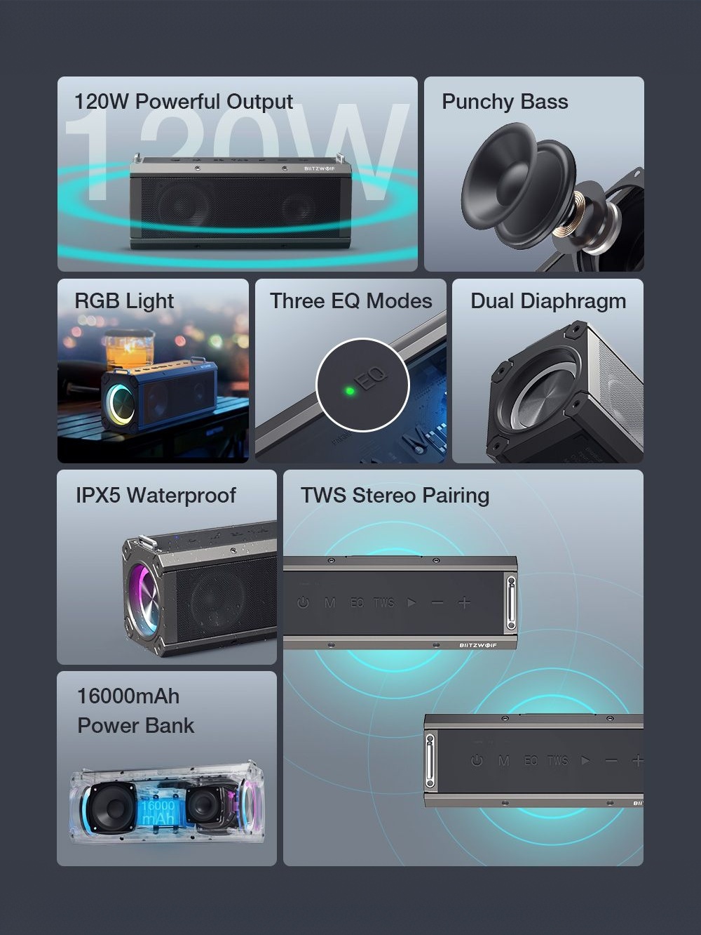 | 1* BlitzWolf® BW-WA3 Pro 120W bluetooth Speaker | |
