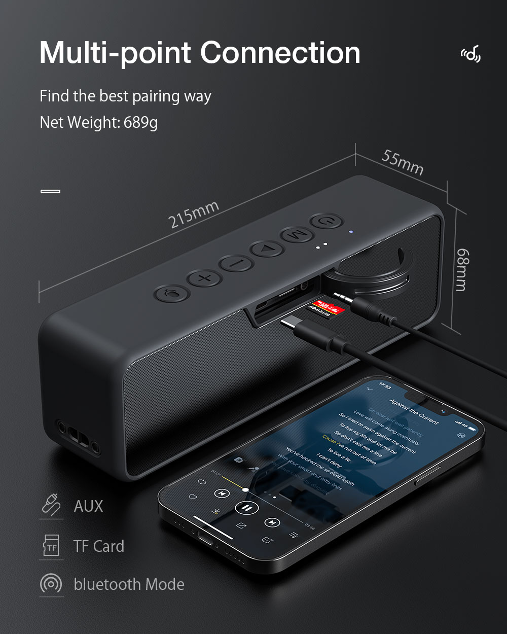 Useita liitäntöjä – Bluetooth, TF-kortti ja AUX-toisto, valitse sinulle sopivin tapa.