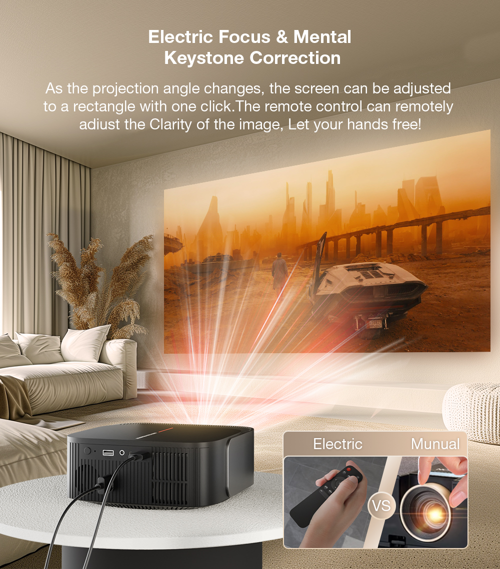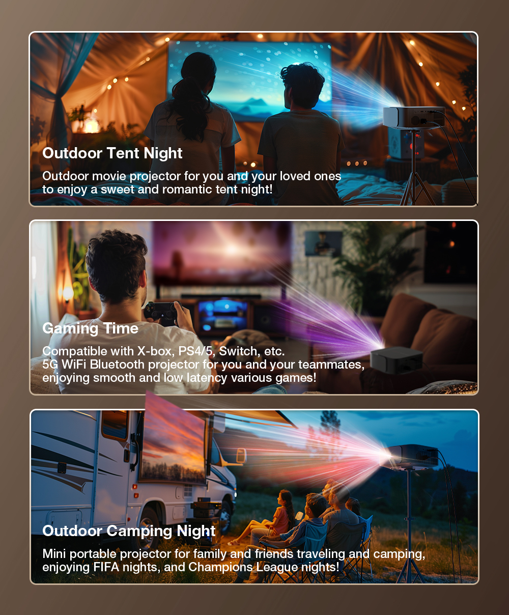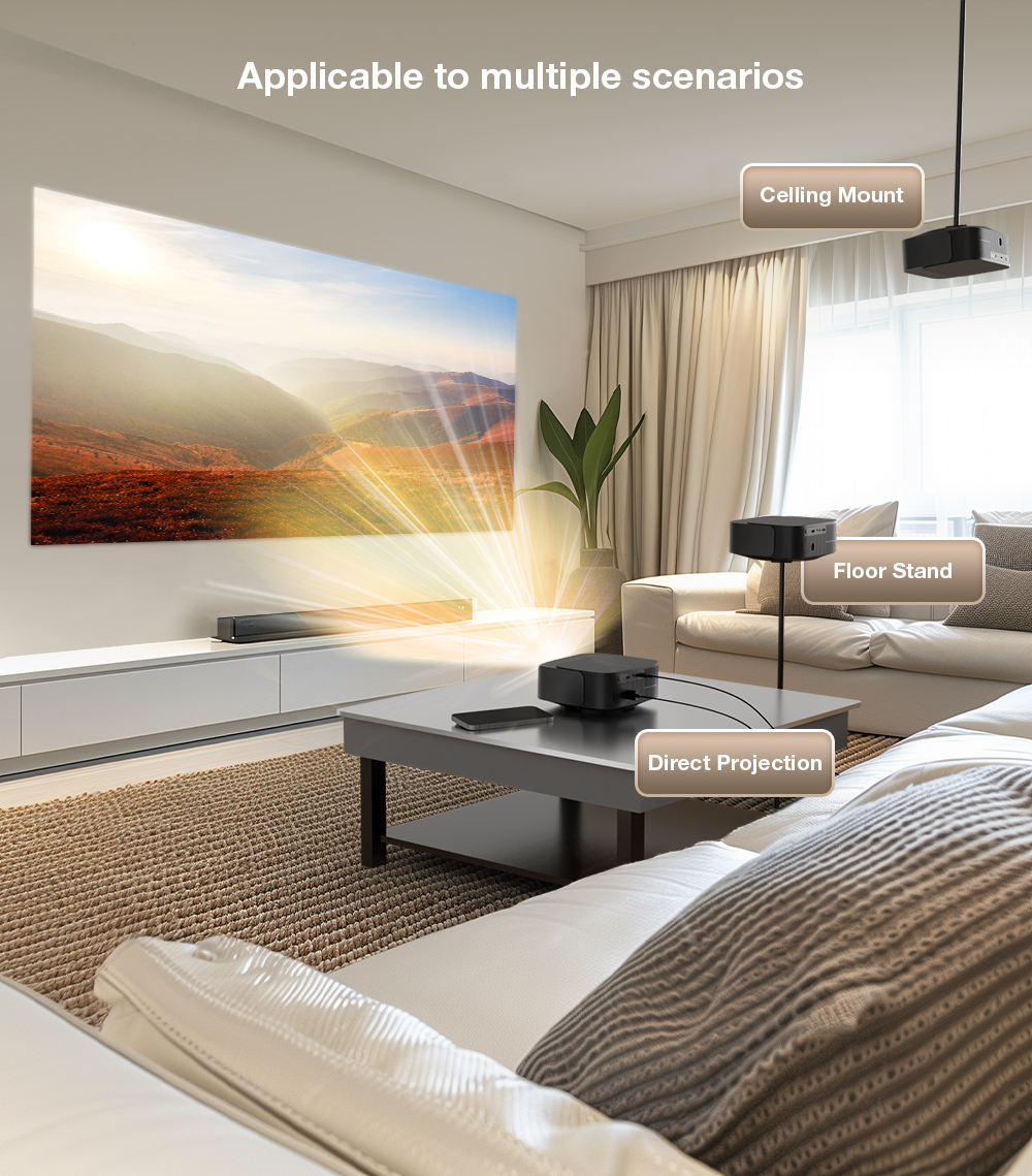 Kompakti LCD-projektori kotiteatteriin ja esityksiin. Natiiviresoluutio 1920*1080, LED-valonlähde (lampun valovirta 7000 lm, käyttöikä 50000) ja 1.25 heittosuhde tuottavat terävän kuvan 40'–150' kokoluokissa. Langaton moninäyttötoiminto Androidille ja iOS:lle sekä 2.4G/5G Wi‑Fi helpottavat sisällön jakamista.