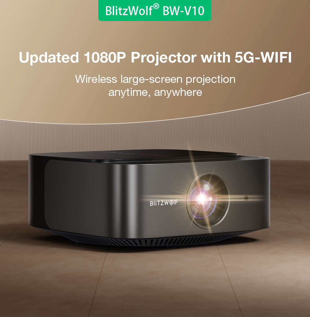 Blitzwolf V10 3-tuumainen LCD-projektori 120-tuuman kuva langaton kaksikaista Wi-Fi Bluetooth-versio 5.3 sähköinen tarkennus