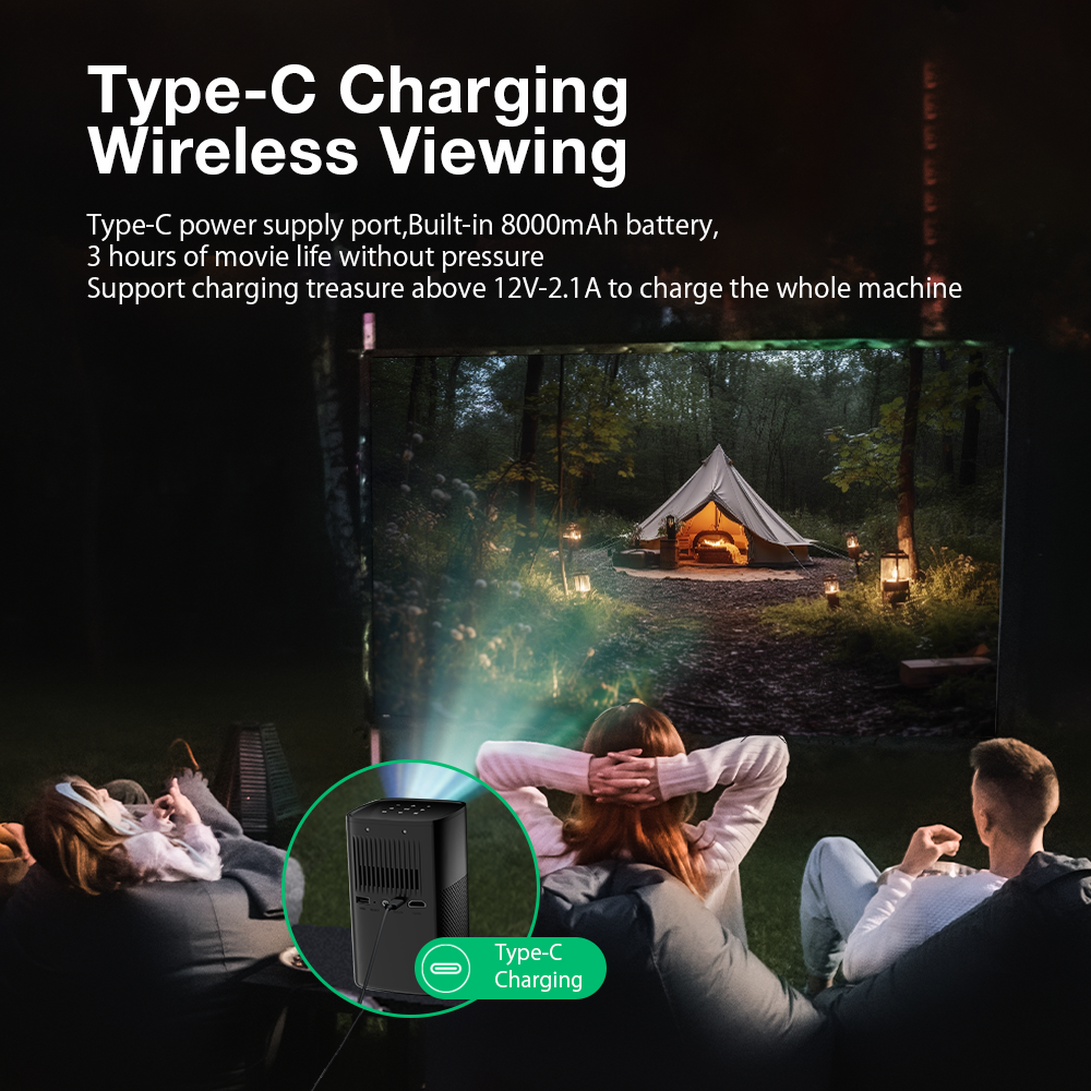 - Varustettu 8000mAH akulla, Type-C -latausportti helppoon lataukseen, yli kahden tunnin akkukesto