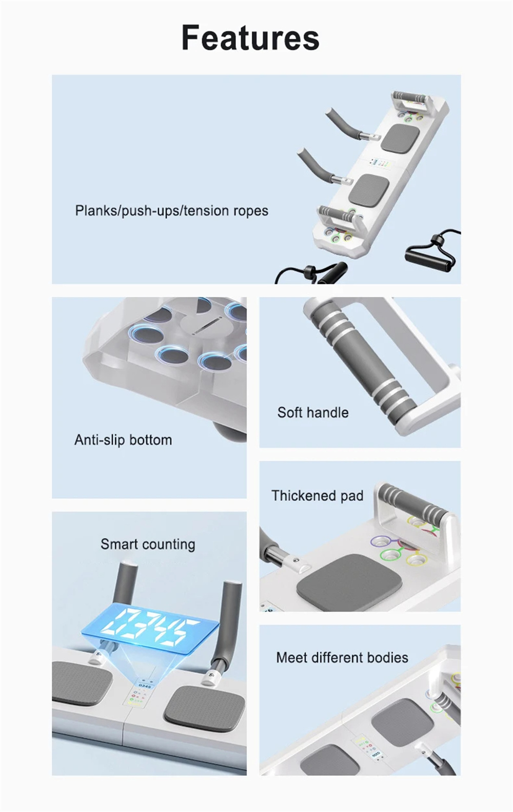 Bominfit älykäs punnerruslauta laskurilla monitoiminen vastusnauhoilla rinta ja vatsalihaksille