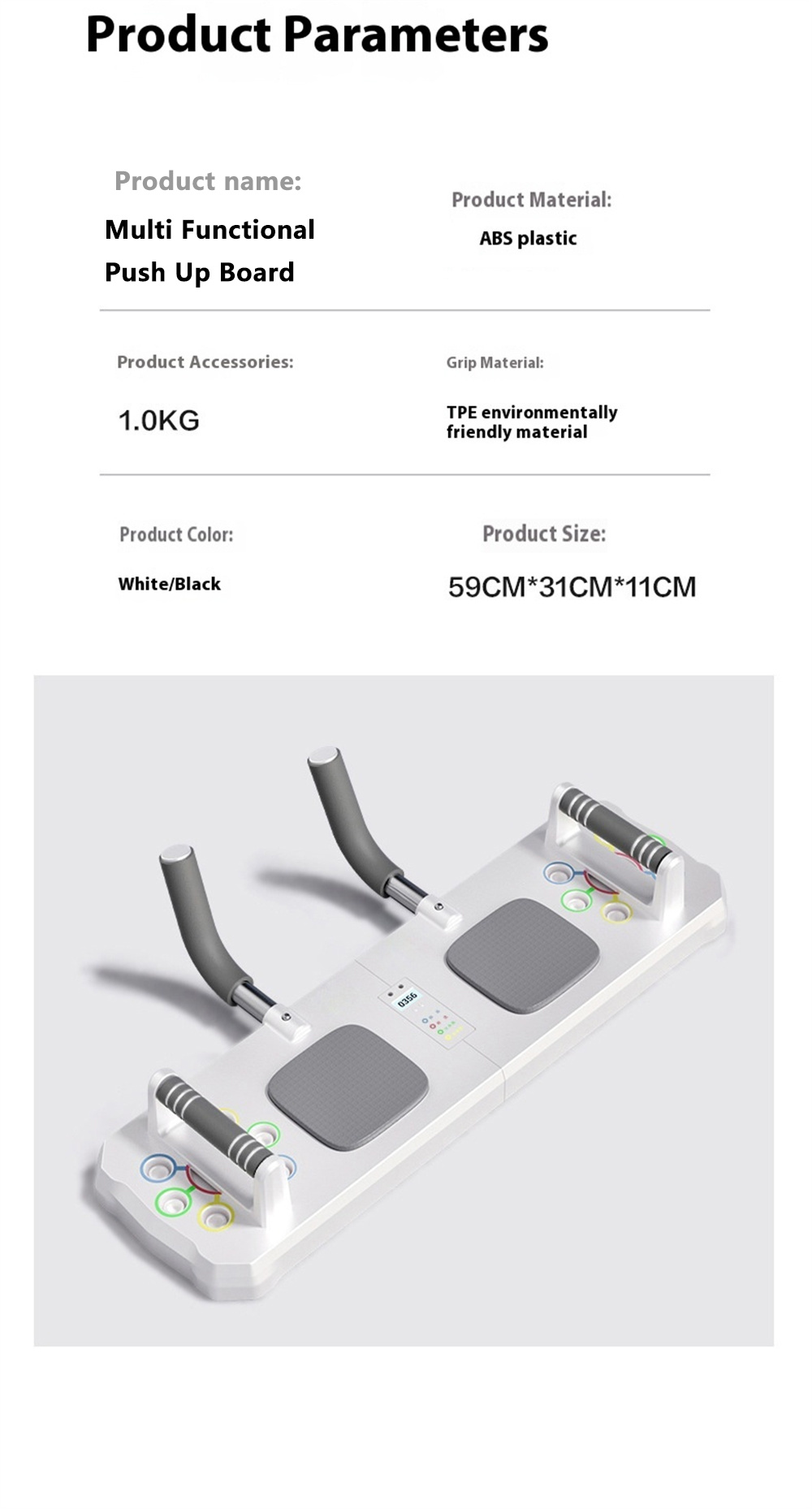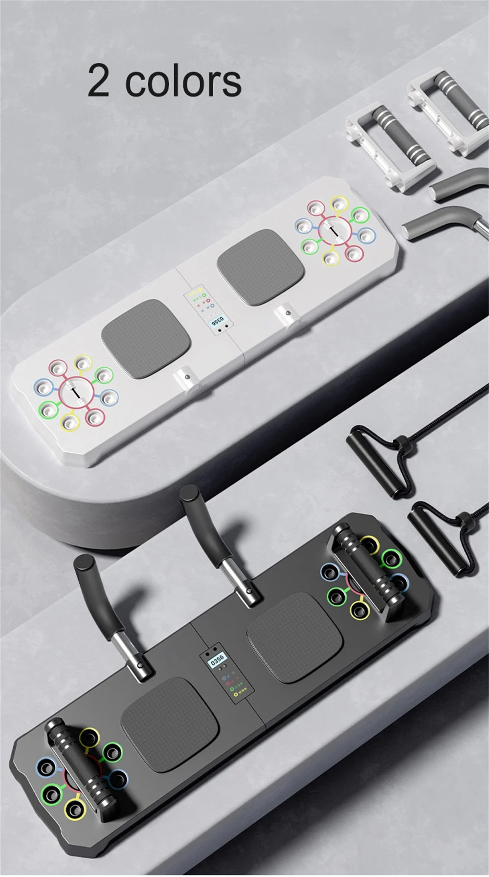Tämä monipuolinen Smart Push-Up Board with Counter auttaa tekemään punnerruksista tehokkaampia ja tasalaatuisempia. Älykäs laskuri seuraa toistot tarkasti, ergonomiset kahvat parantavat otetta ja mukana tulevat vastuskuminauhat mahdollistavat monipuolisen lihasharjoittelun kotona, toimistossa tai ulkona.