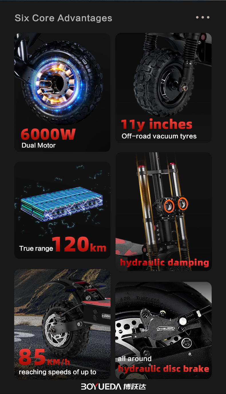 - 6000W kaksoispyörämoottori tuottaa erittäin vahvan vetotehon.