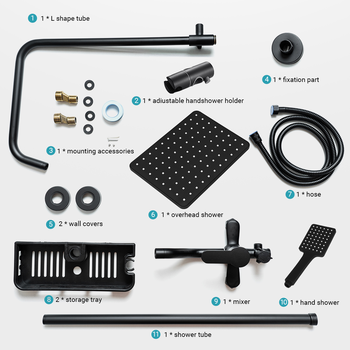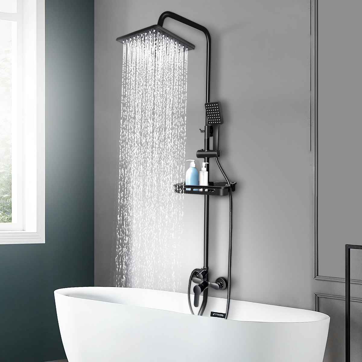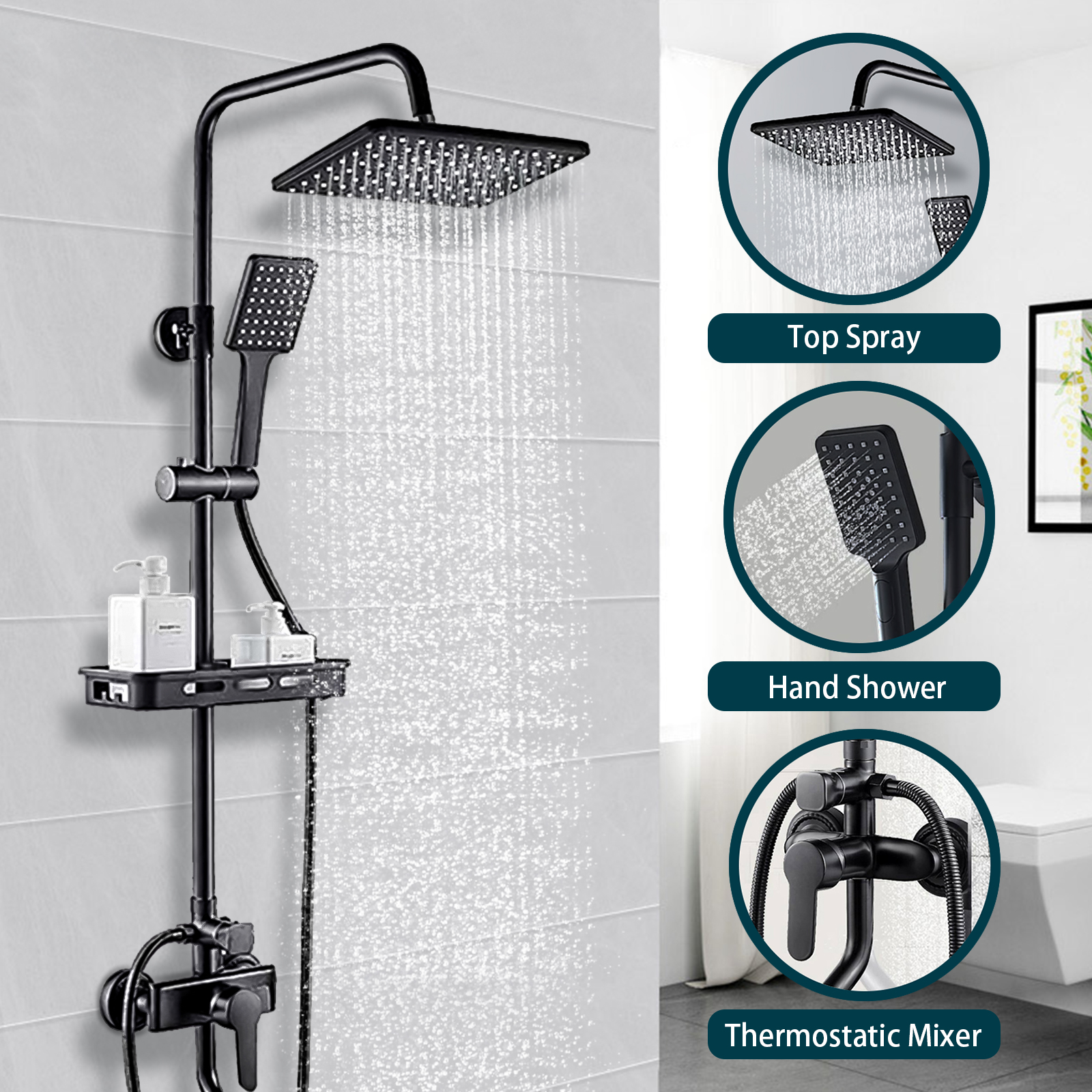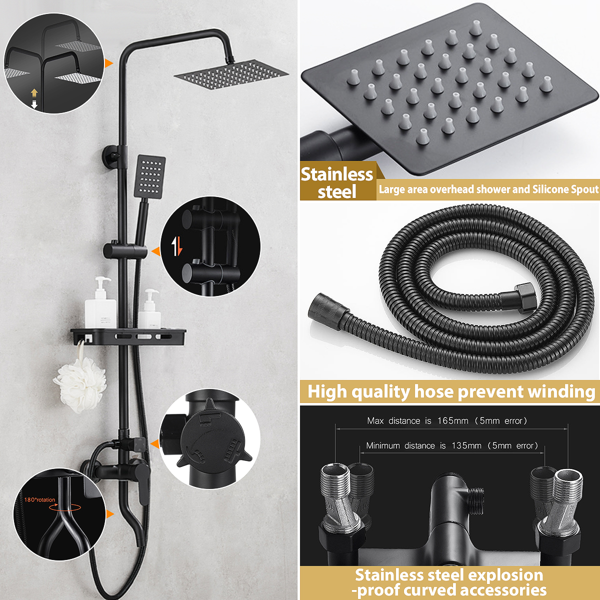 BVSOIVIA kolmitoiminen mattamusta suihkujärjestelmä seinäasennus hyllyllä ja käsisuihkulla