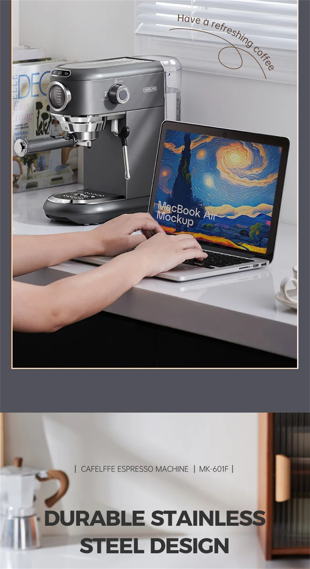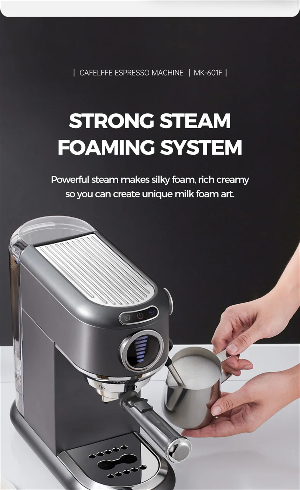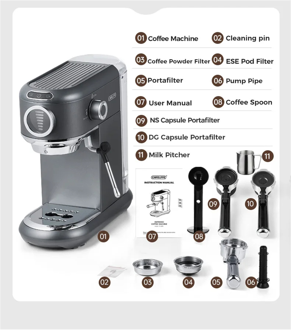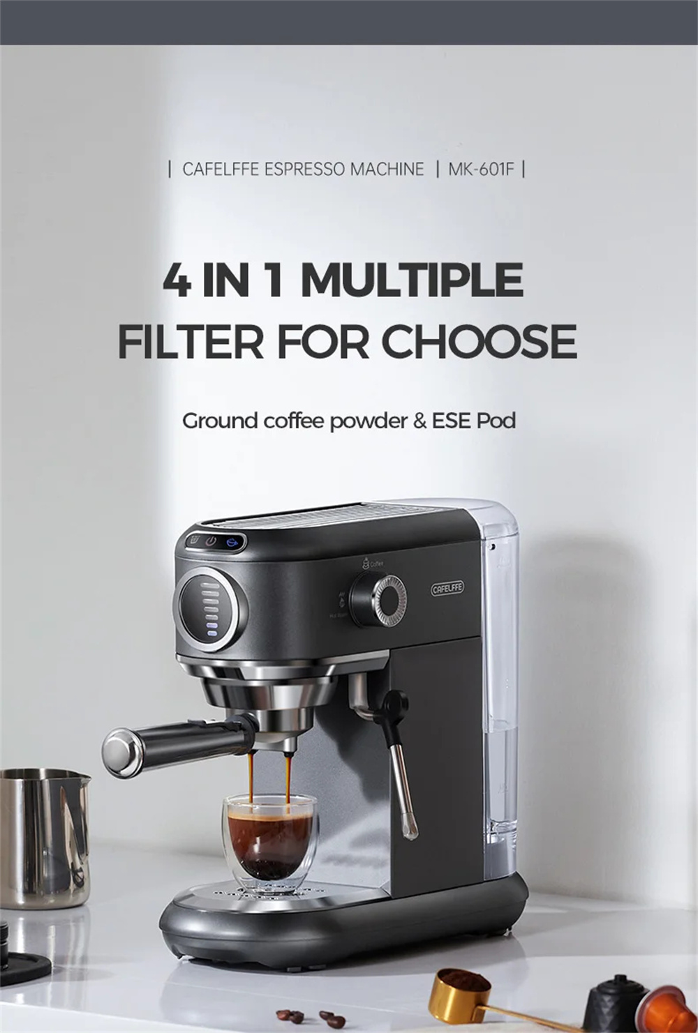 CAFELFFE MK-601F puoliautomaattinen espresso 19 baarin 1450W portafiltteri höyrysauva kapseliyhteensopiva