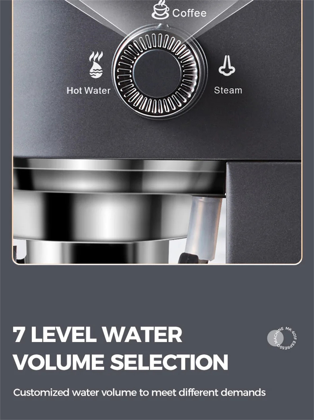 - Tarkka 7-tasoinen vesimäärän säätö: valitse seitsemästä esiasetuksesta. Pienemmät määrät tuovat napakan espresson, suuremmat sopivat pitkään kahviin — nopeat ja toistettavat tulokset.