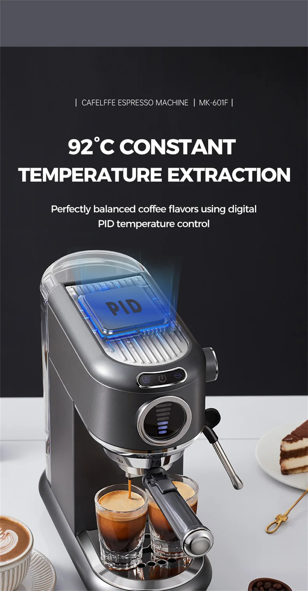 - Ammattitasoinen uutto esikastelulla ja nopealla lämmityksellä: 19 barin italialainen pumppu ja 1450W pikakuumennus tuovat täyteläisen creman ja aromin. Matalapainetason esikastelu kostuttaa purut ennen varsinaista uuttoa, vähentää kanavoitumista ja parantaa makutasapainoa.