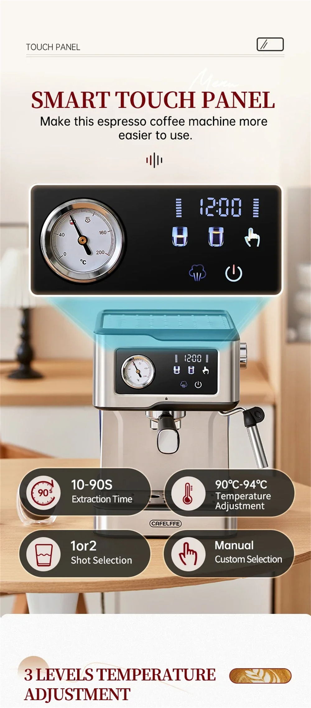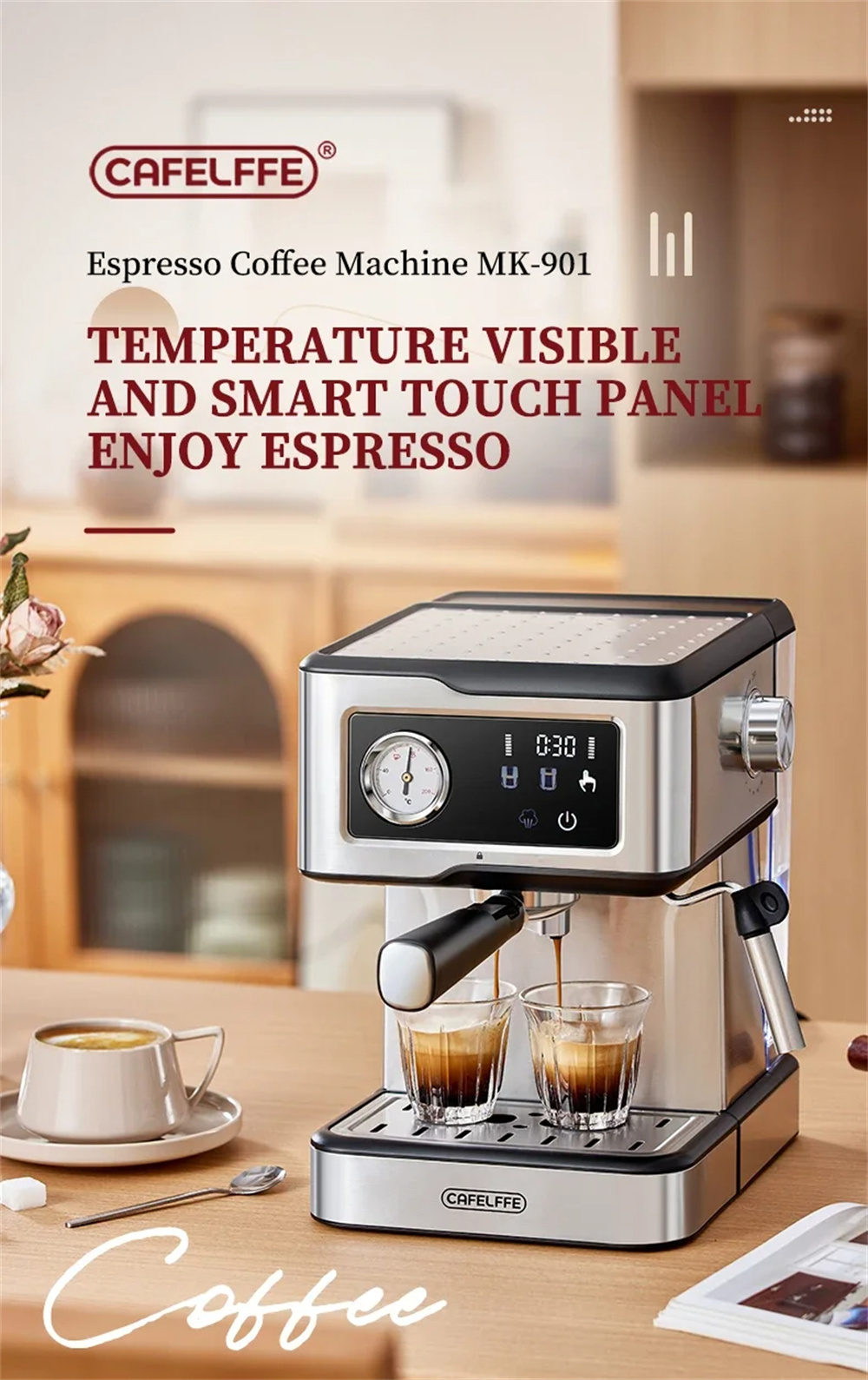 CAFELFFE MK-901 espressokone 20 baarin kosketuspaneeli maidonvaahdotin säädettävä lämpötila kompakti