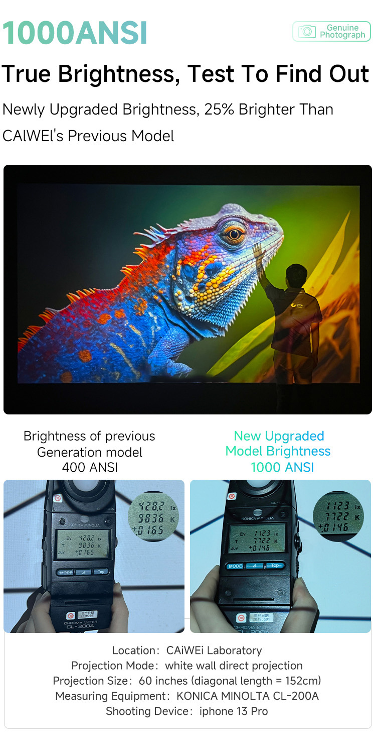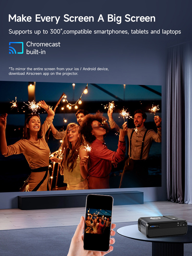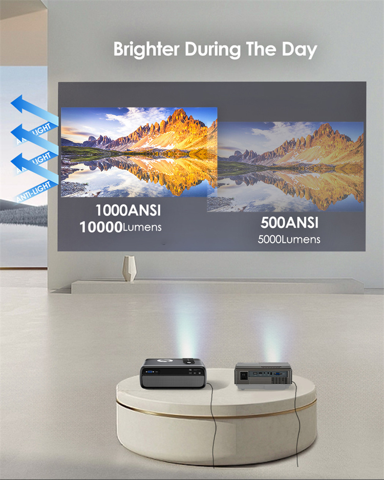 1. Parannettu kuvan selkeys: 1000 ANSI -kirkkaus ja pinnoitettu lasilinssi tuottavat 4K-kuvaa ja luonnollisia värejä.