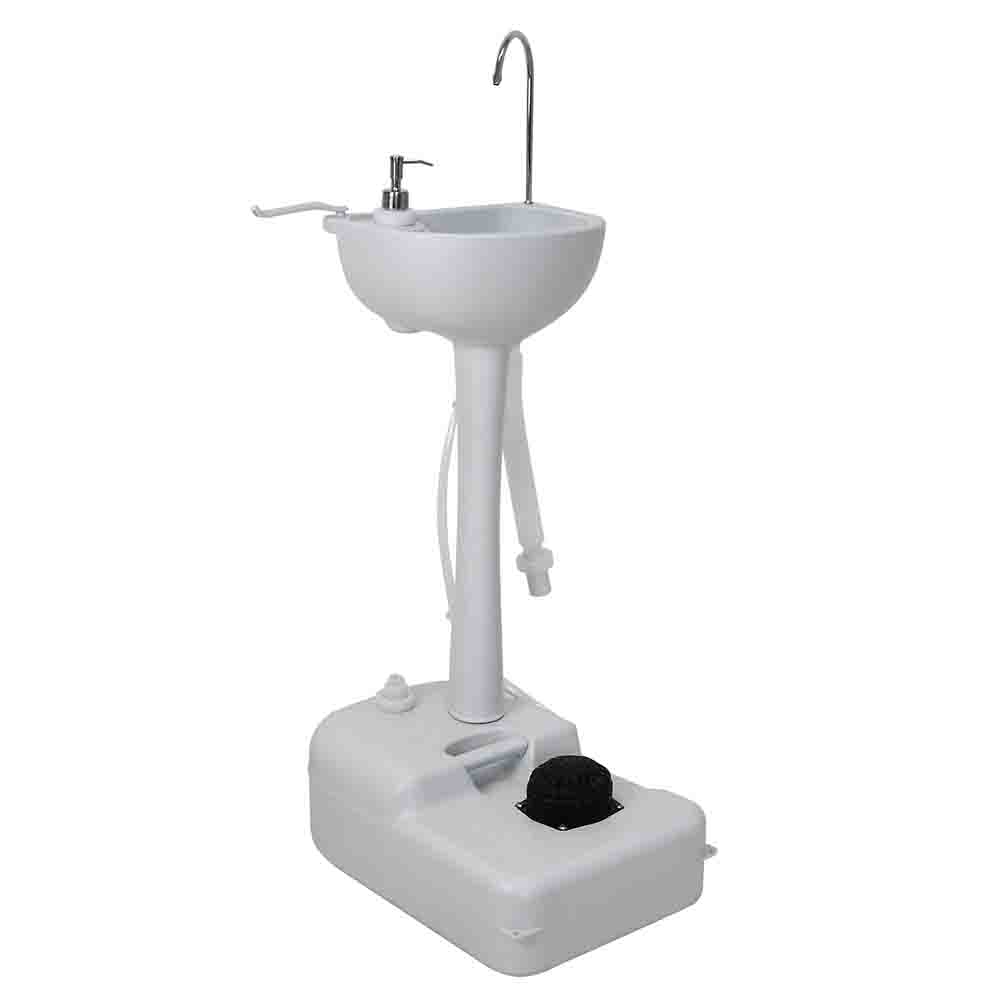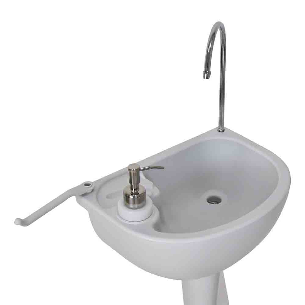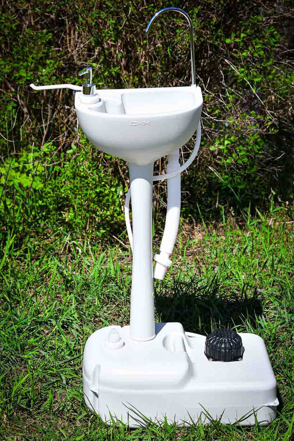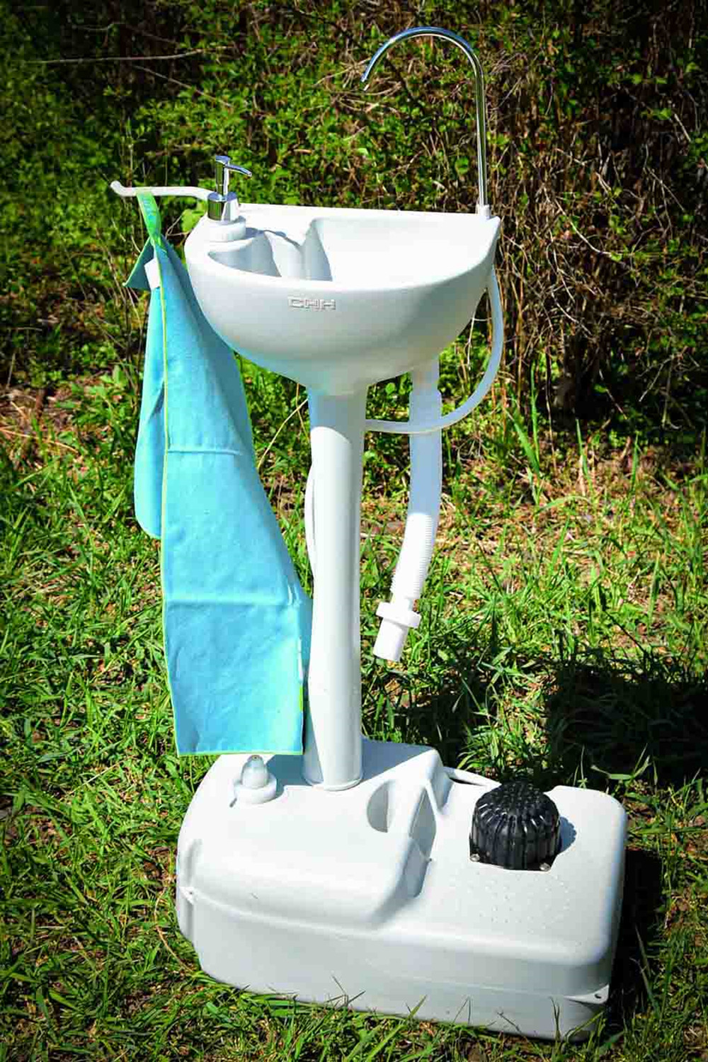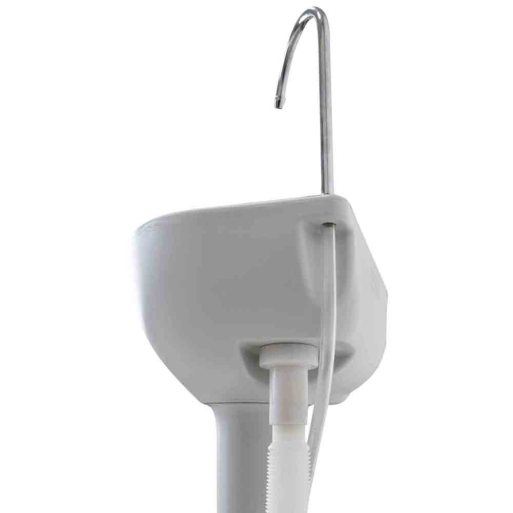 Kompakti ja siirrettävä käsienpesuallas ulkokäyttöön. Soveltuu erityisesti leirintään, retkeilyyn, pihajuhliin, torimyyjille ja muihin tilanteisiin, joissa juokseva vesi ei ole helposti saatavilla. Jalustallinen allas, poljinpumppu ja vesisäiliö muodostavat yhtenäisen kokonaisuuden, jota on helppo siirtää ja säilyttää.
