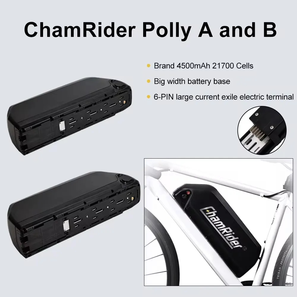 ChamRider Polly A on korkeakapasiteettinen sähköpyörän akku, joka tarjoaa 36V31.5AH energian (1134Wh) pitkille ajomatkoille. Li-ion 21700 -kennoihin perustuva rakenne ja sisäänrakennettu BMS takaavat tasaisen suorituskyvyn ja suojauksen. Sopii 36V 250W–1500W moottoreille.