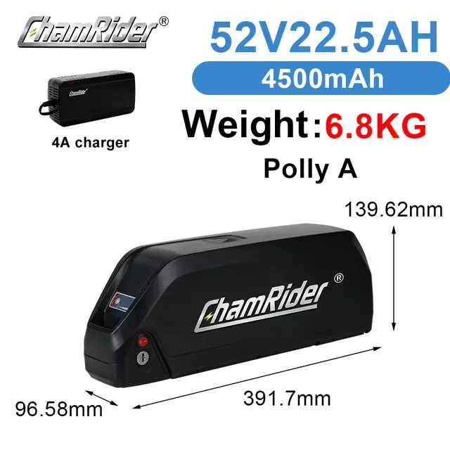 ChamRider Polly A 52V 22,5Ah 1170Wh alasputken sähköpyöräakku 50A akunhallintajärjestelmä vesitiivis laturi mukana
