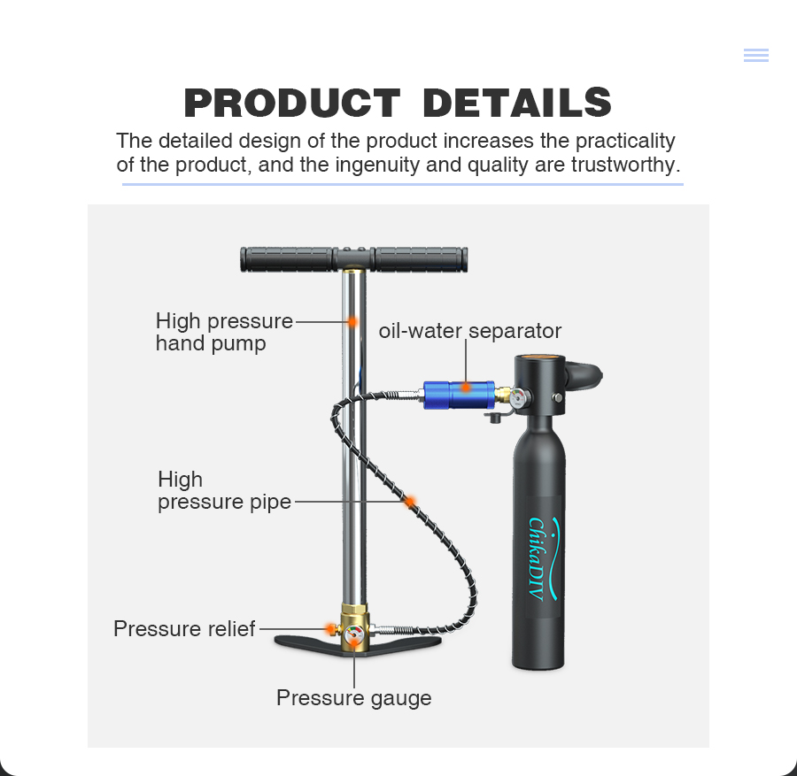 ChikaDIV pieni manuaalinen korkeapainepumppu sukellukseen 30MPa ruostumattomasta teräksestä