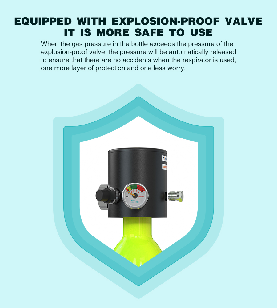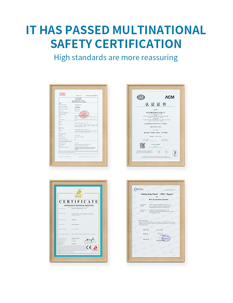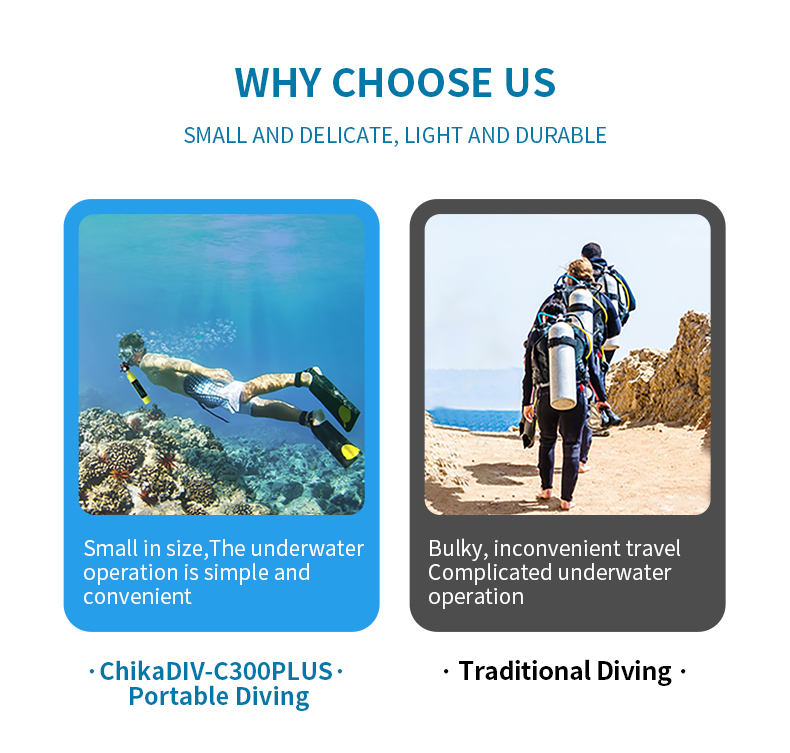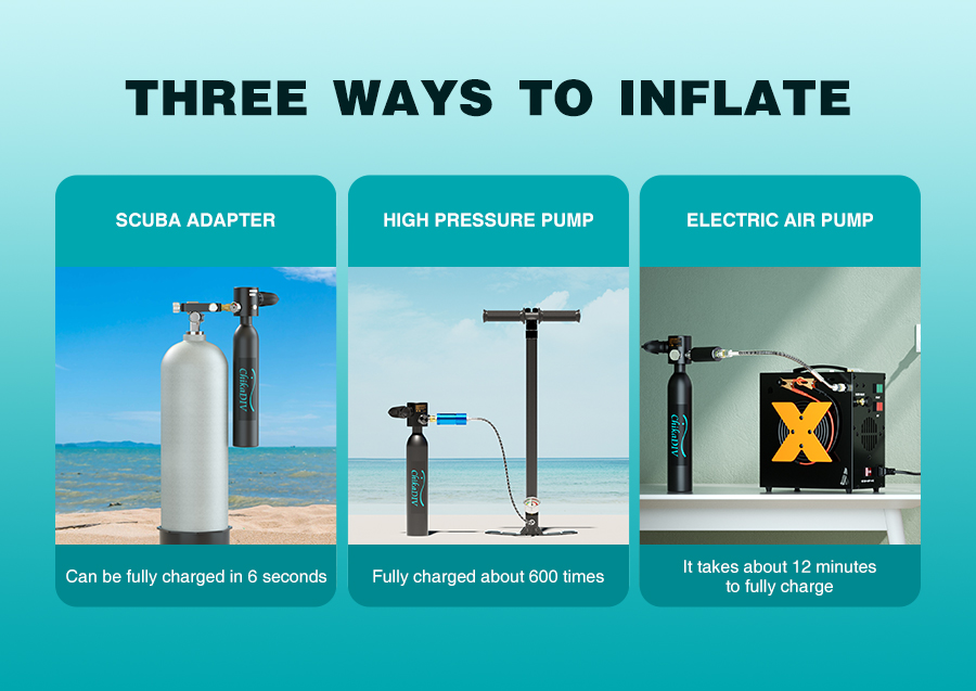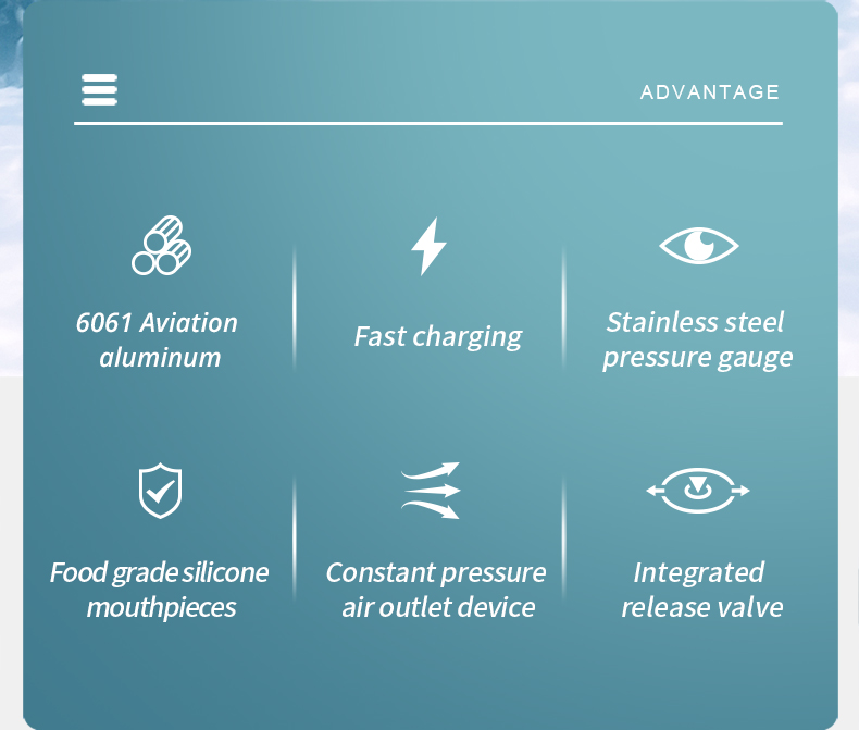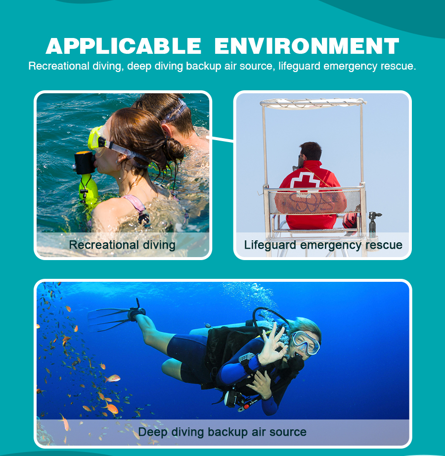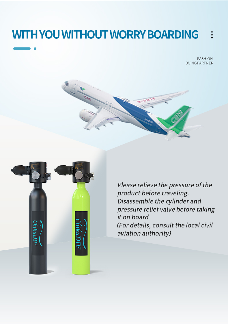 Tyhjänä säiliö painaa vain noin 1kg ja on huomattavasti pienempi ja kevyempi kuin perinteiset sukelluspullot. Se on helppo ottaa mukaan matkalle ja kuljettaa esimerkiksi matkatavaroissa. Käyttö ei edellytä aiempaa kokemusta sukellusvarusteista, mutta turvallisuusohjeita on aina noudatettava.
