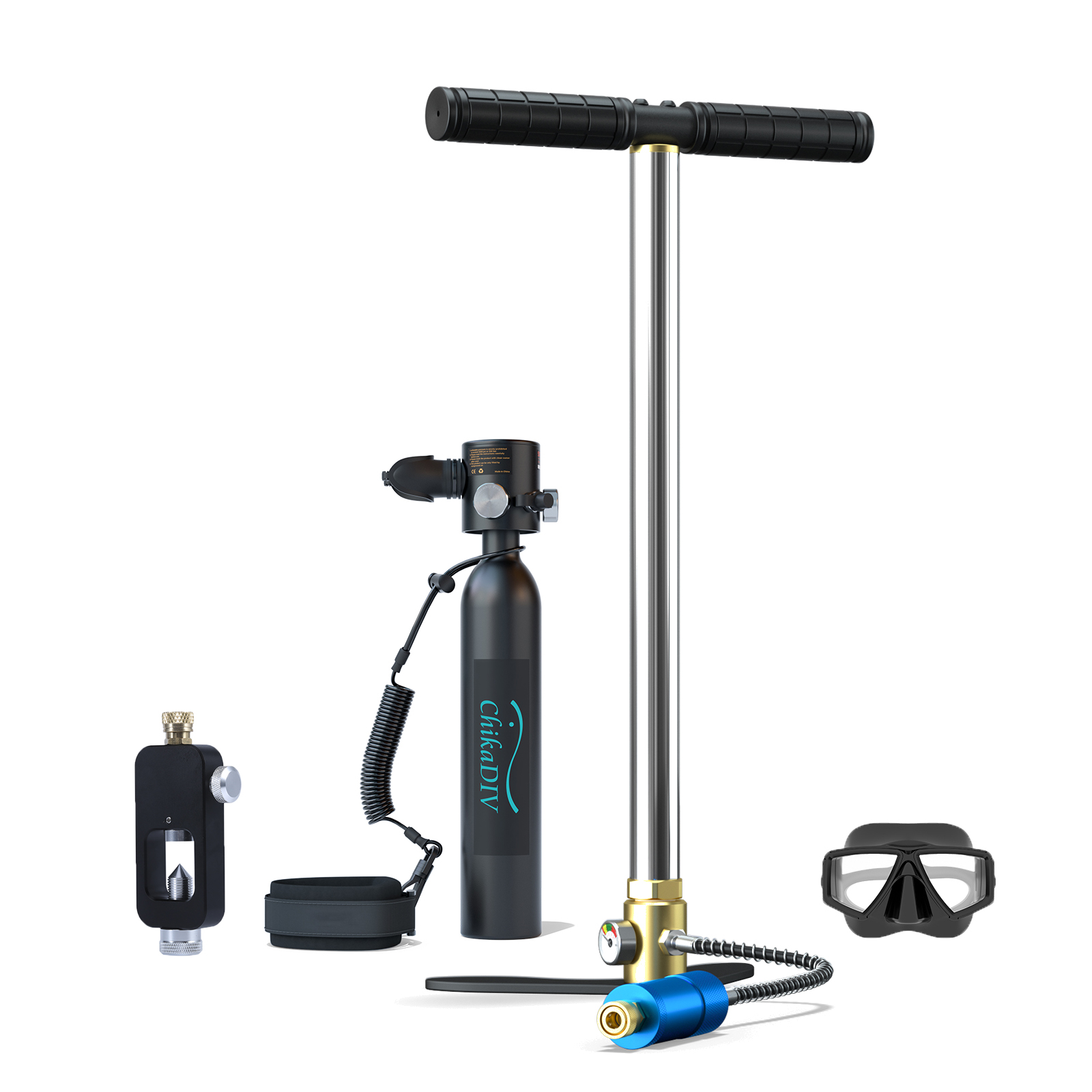 ChikaDIV C300 Plus -minisukellussäiliö tarjoaa jopa 5–7 minuutin hengitysajan veden alla (enintään noin kolmen metrin syvyydessä), jolloin voit liikkua vapaammin esimerkiksi snorklatessa, altaalla tai matalissa sukelluksissa. Kompakti koko, kevyt rakenne ja useat täyttötavat tekevät siitä helppokäyttöisen myös harrastajille.