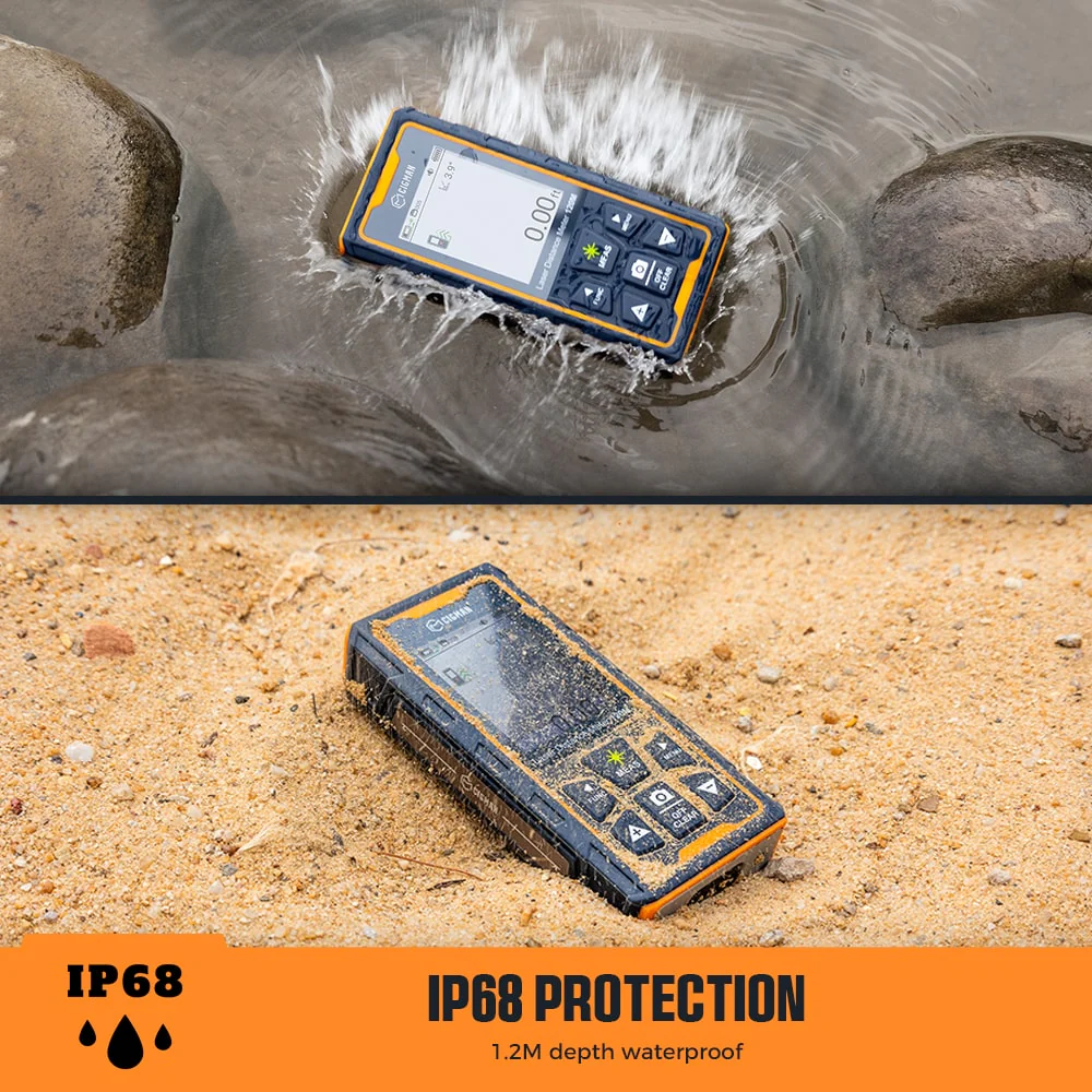 Veden- ja pölynkestävyys: ABS-pinnoitettu runko ja metalliosat, IP68-suojaus upotusta ja pölyä vastaan, sopii vaativiin työmaaolosuhteisiin.