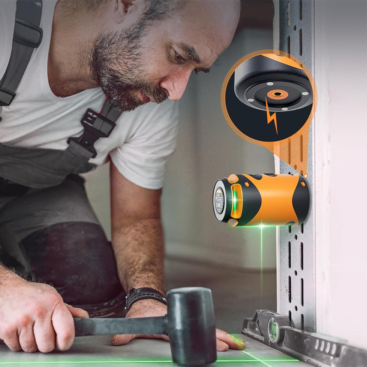 - Vihreä itsetasaava ristiviivalaser jopa 100 ft työskentelyetäisyydelle
