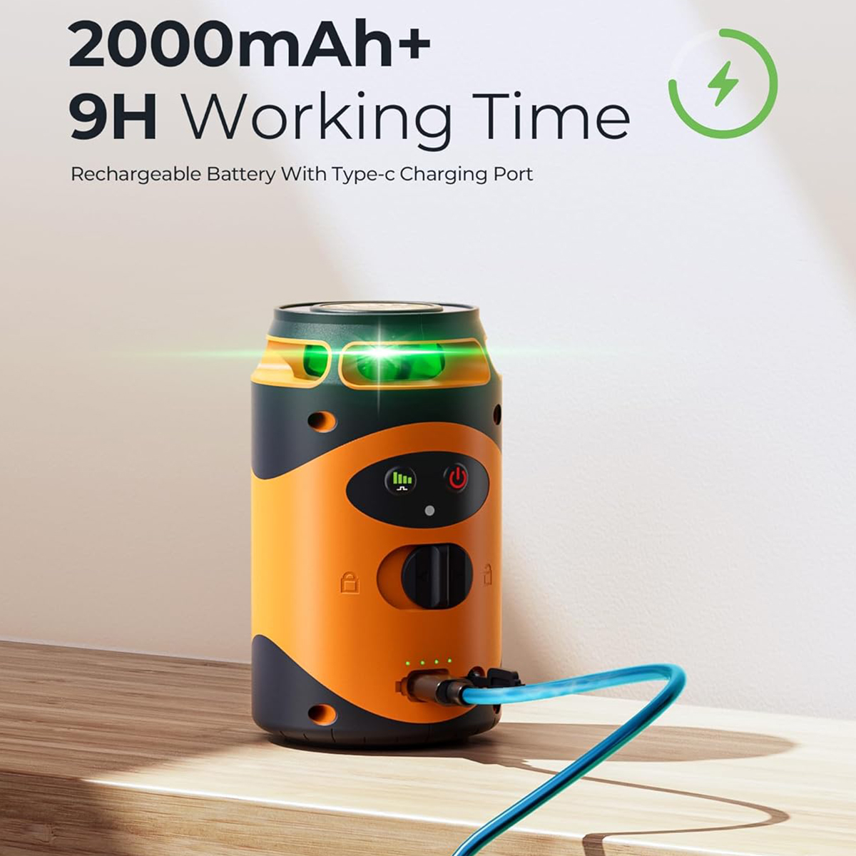 Säädettävä kirkkaus: Neljä kirkkaustasoa (25%, 50%, 75%, 100%) helpottavat näkyvyyden ja akkukeston tasapainottamista erilaisissa ympäristöissä. Sisäänrakennettu 2000mAh ladattava akku ja Type-C-lataus tarjoavat pitkän käyttöajan ja kätevän latauksen.