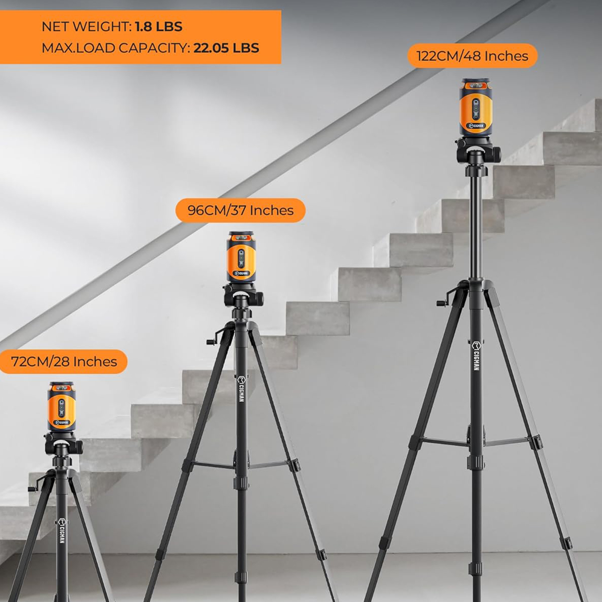CIGMAN CM-505 on vihreää lasersädettä käyttävä itsetasaava ristiviivalaser, joka tarjoaa laajan kattavuuden sekä tarkat linjat sisä- ja kevyisiin ulkotöihin. Mukana tulee 48-tuumainen jalusta ja säilytyslaukku helppoon kuljetukseen.