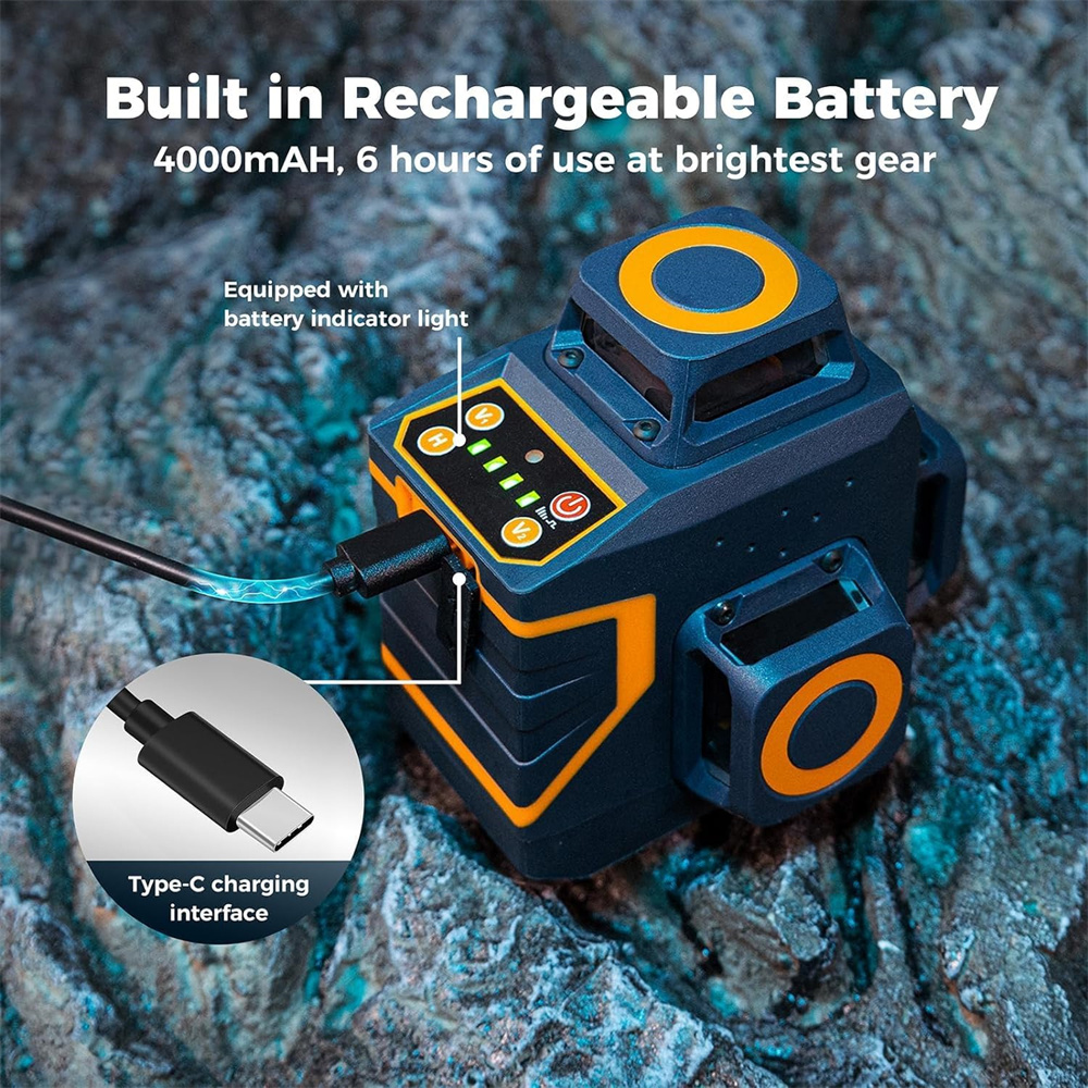 Laser on varustettu 1 x 360° vaakalinjalla ja 2 x 360° pystylinjalla, jolloin koko tila voidaan linjata yhdellä laitteella. Jokainen painike vastaa yksittäistä linjaa, joten voit valita helposti, mitkä linjat ovat käytössä.