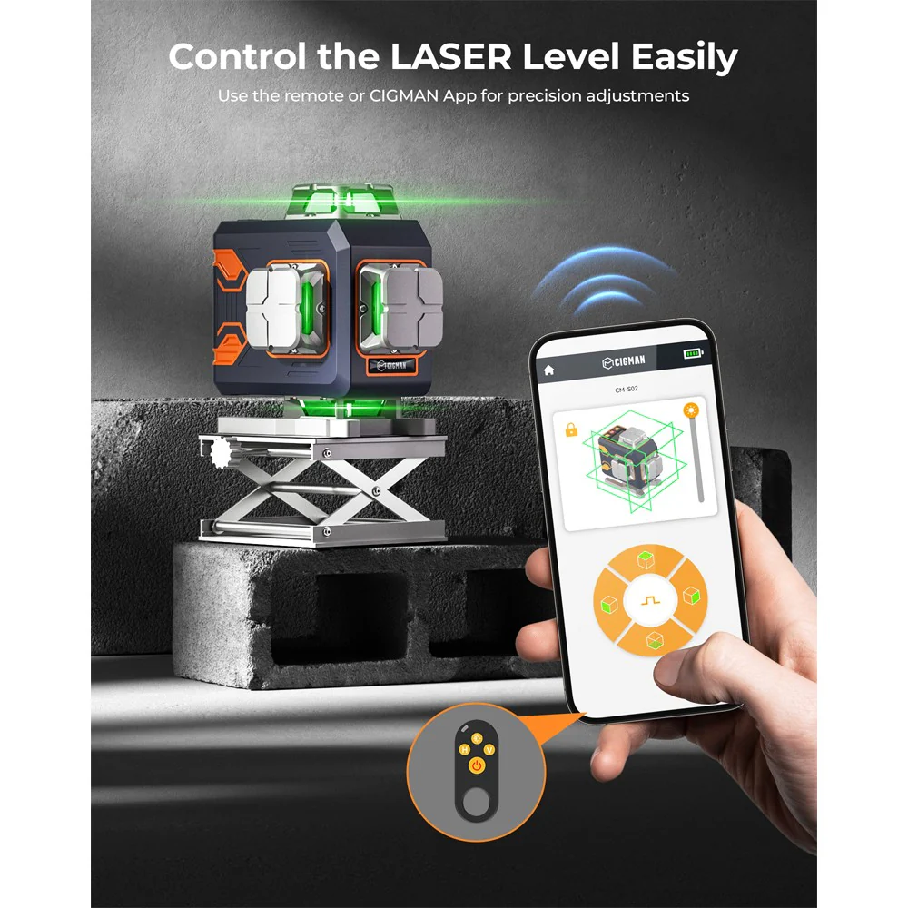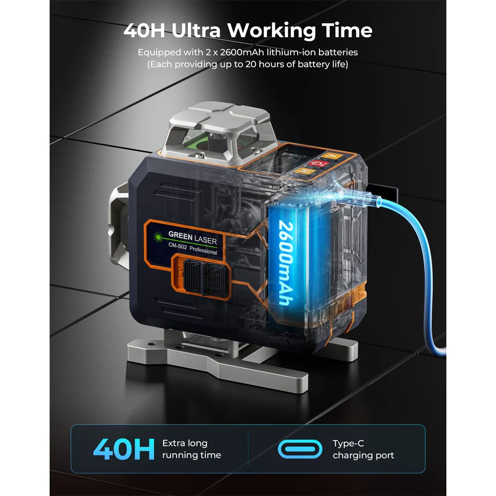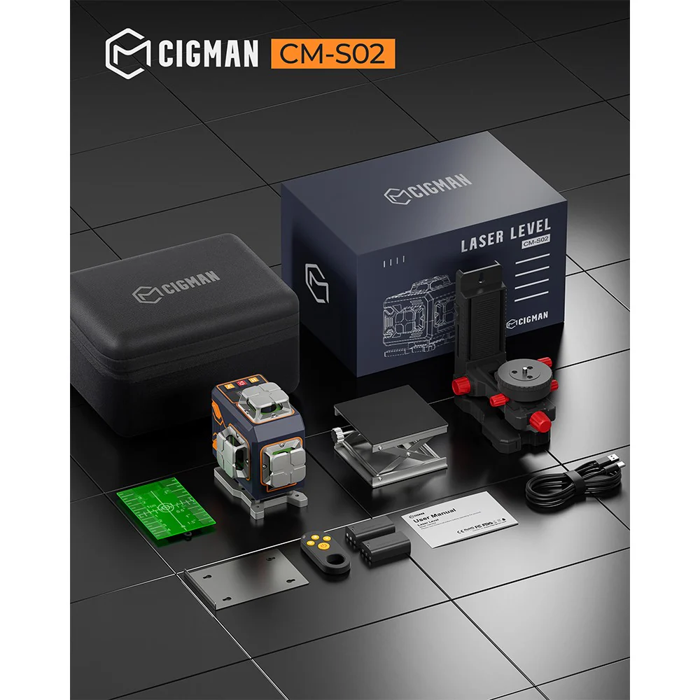 CIGMAN CM-S02 vihreä risti-linjalaser 4x360 itsesäätyvä kaukosäädin akku Type-C IP54