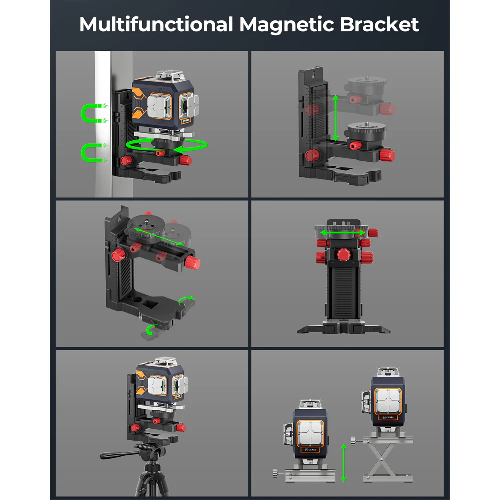 Monitasoinen CIGMAN CM-S02 -laserlinjain helpottaa tarkkaa mittausta ja linjausta sisätilojen rakennus- ja remonttitöissä. Neljä 360° laserlinjaa, pitkä käyttöaika ja mukana tuleva kattava varustepaketti tekevät laitteesta sopivan sekä ammattilaisille että harrastajille.
