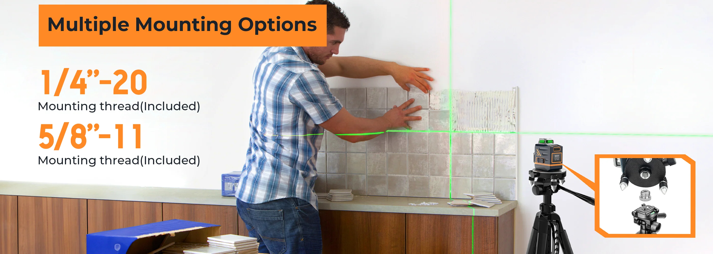 Maksimi: '-20 UNC to 5/8'-11 UNF -sovitin, sopii laserietäisyysmittareille, kameroille, projektoreille, puhelimille ja muille laitteille.