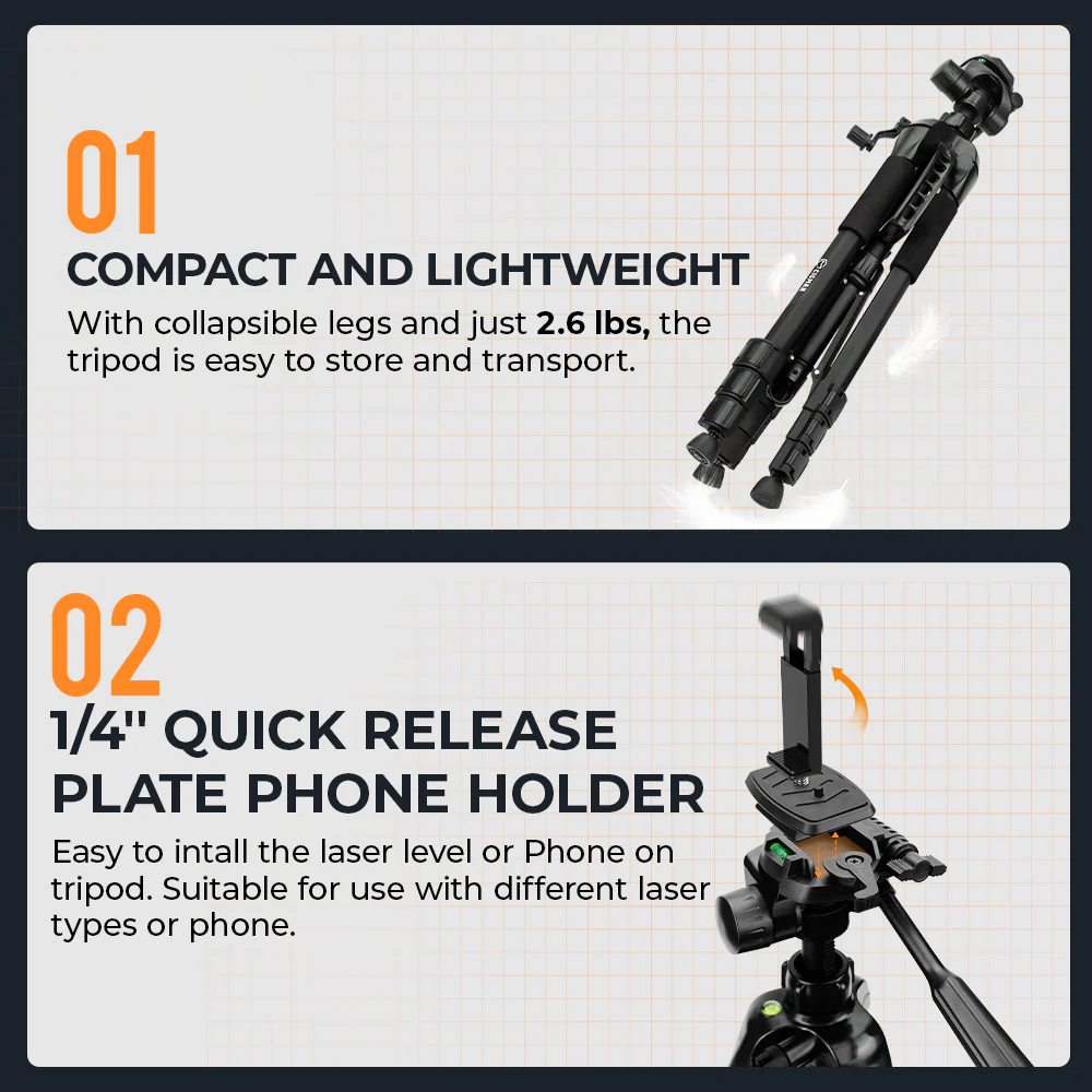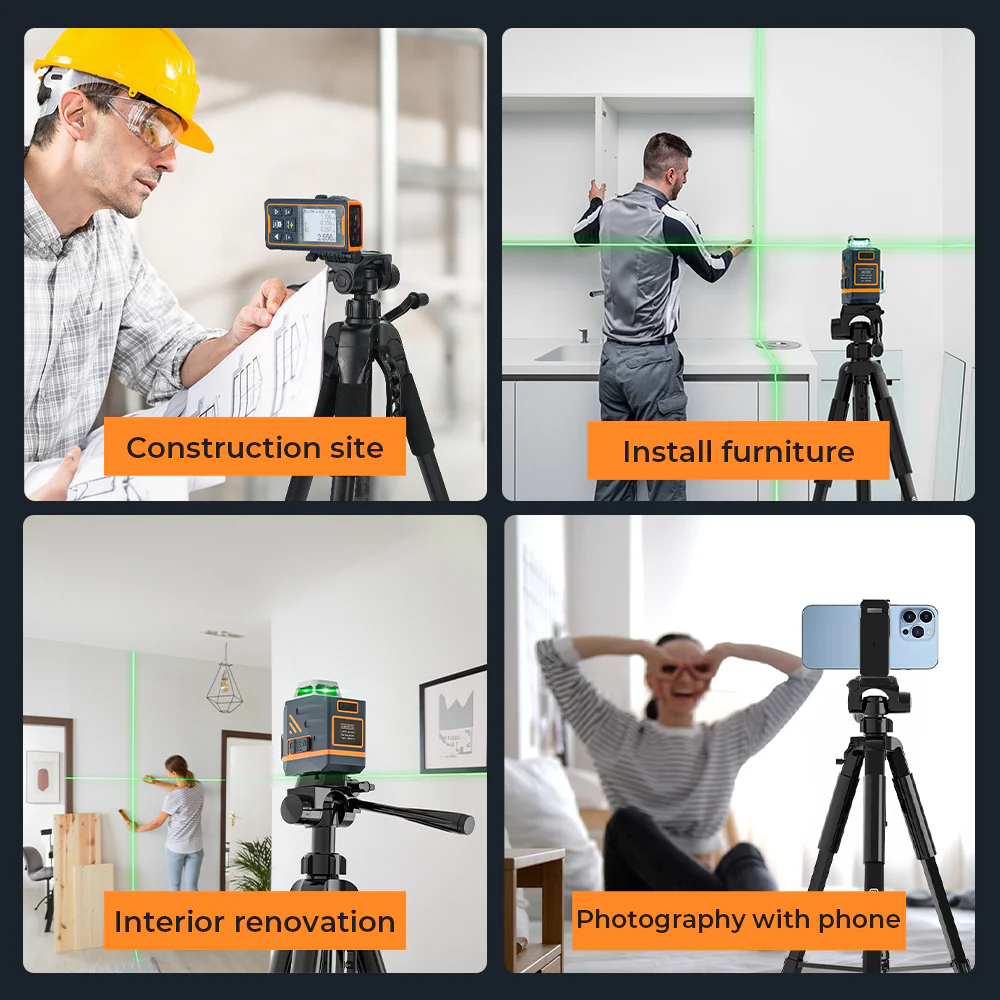 - Soveltuu laserietäisyysmittareille, kameroille, projektoreille ja älypuhelimille