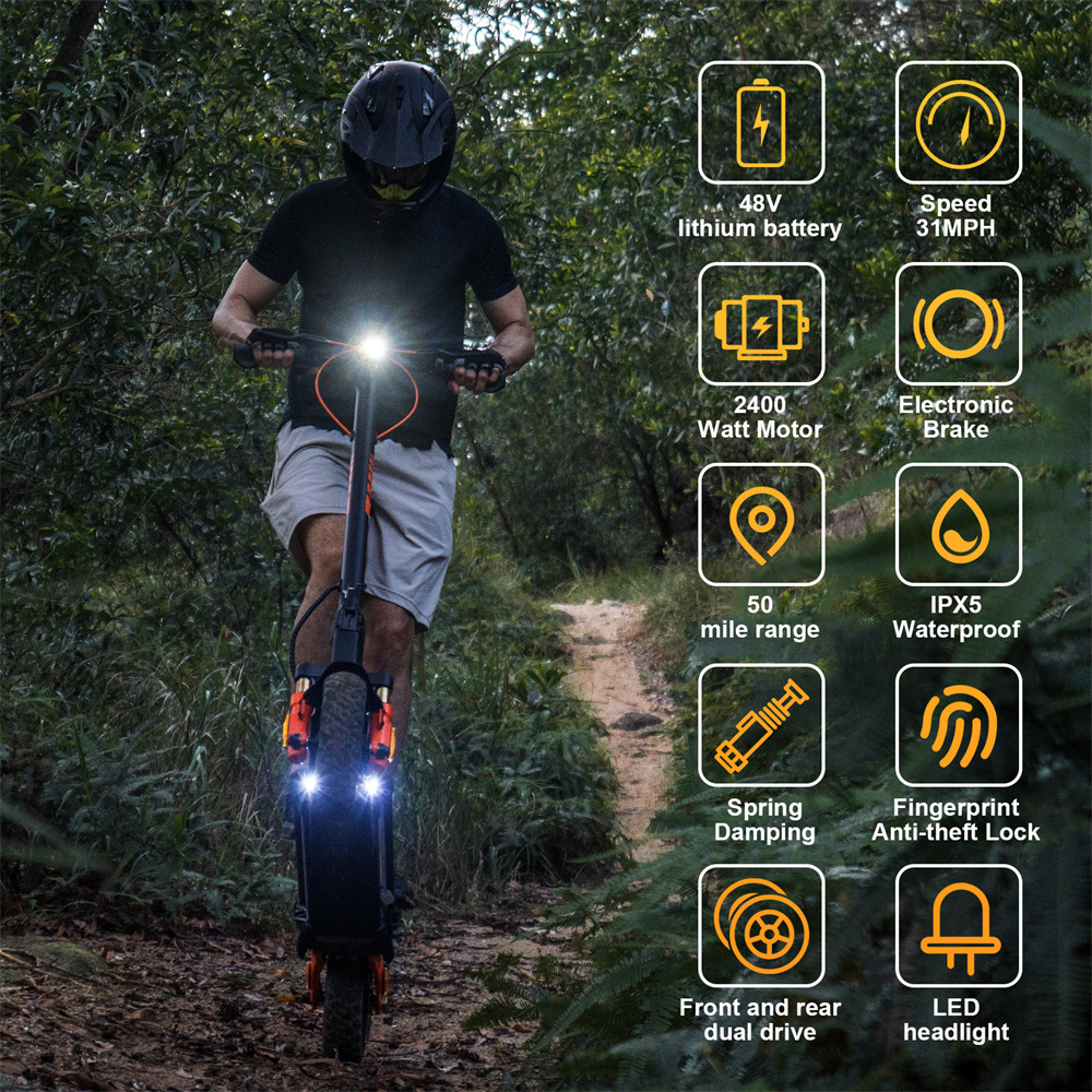 CUNFON RZ1000 taitettava sähköpotkulauta 48V 24Ah akku kaksoismoottorit 1200W 10,5-tuumaiset renkaat