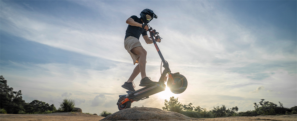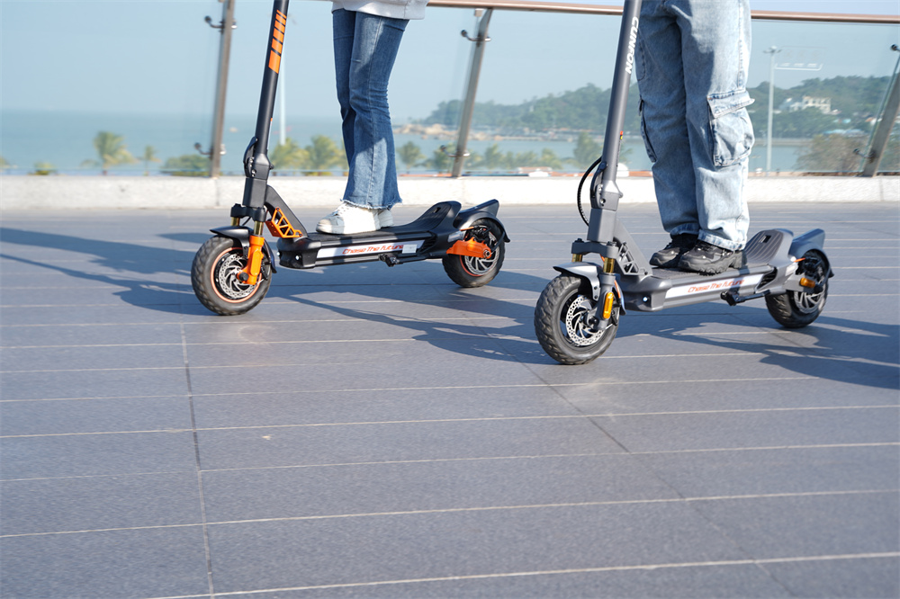 Tehokas ja vakaa sähköpotkulauta päivittäisiin matkoihin ja vapaa-aikaan. Kestävä alumiinirunko, mukautuva jousitus ja vahvat jarrut tuovat ajomukavuutta ja hallittavuutta erilaisilla alustoilla.