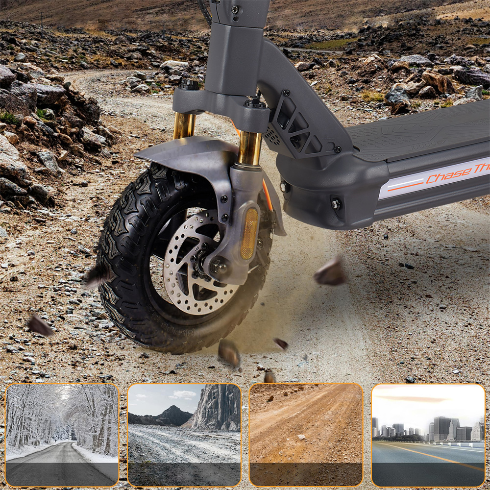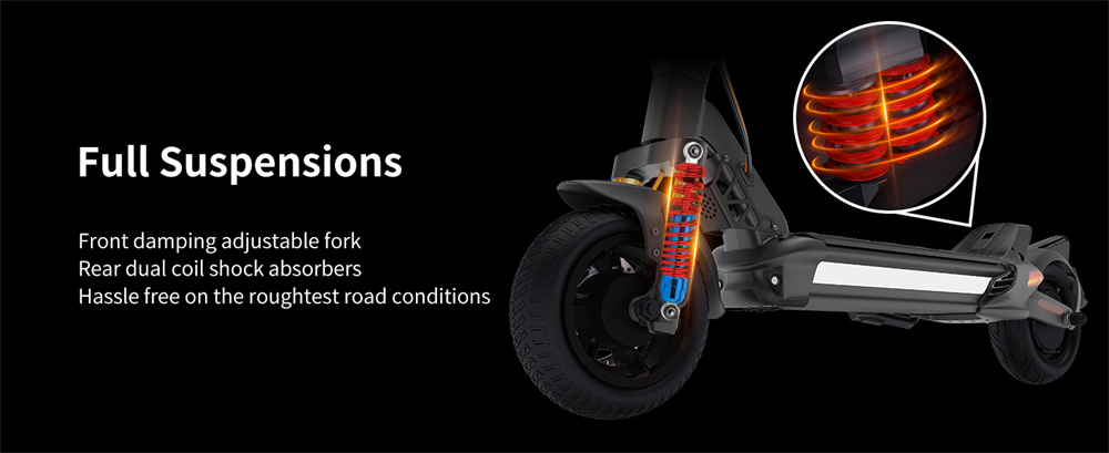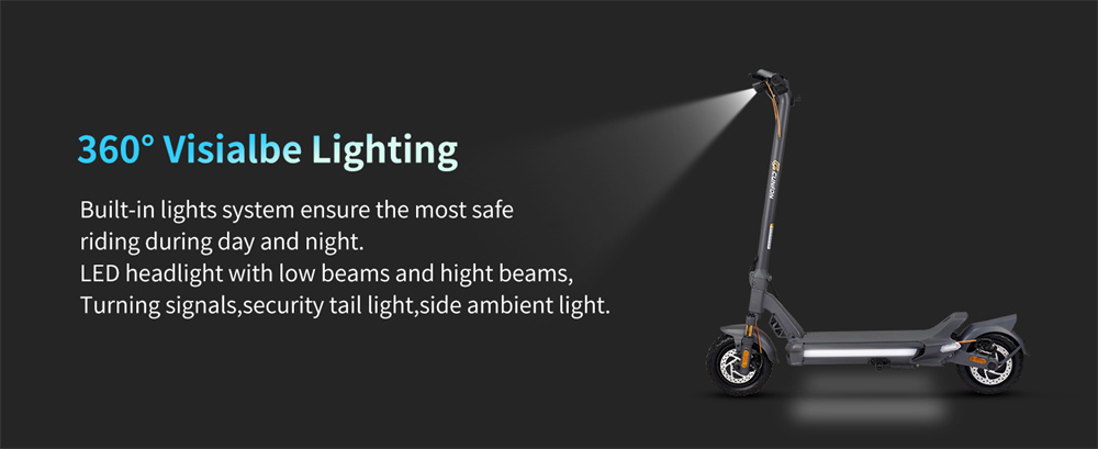 Vankkarunkoinen CUNFON RZ800 -sähköpotkulauta tarjoaa tehokkaan 1200W (1600W huipputeho) moottorin, 10.5-tuumaiset renkaat ilman sisärengasta ja kaksoislevyjarrut sähköisellä avustuksella. Säädettävä etuvaimennus ja takana kaksoisjousitetut iskunvaimentimet tekevät ajosta tasaisen myös epätasaisilla alustoilla. LED-näyttö, ajovalot ja takavalo parantavat näkyvyyttä. lewheel -sovellustuki helpottaa asetusten seurantaa.