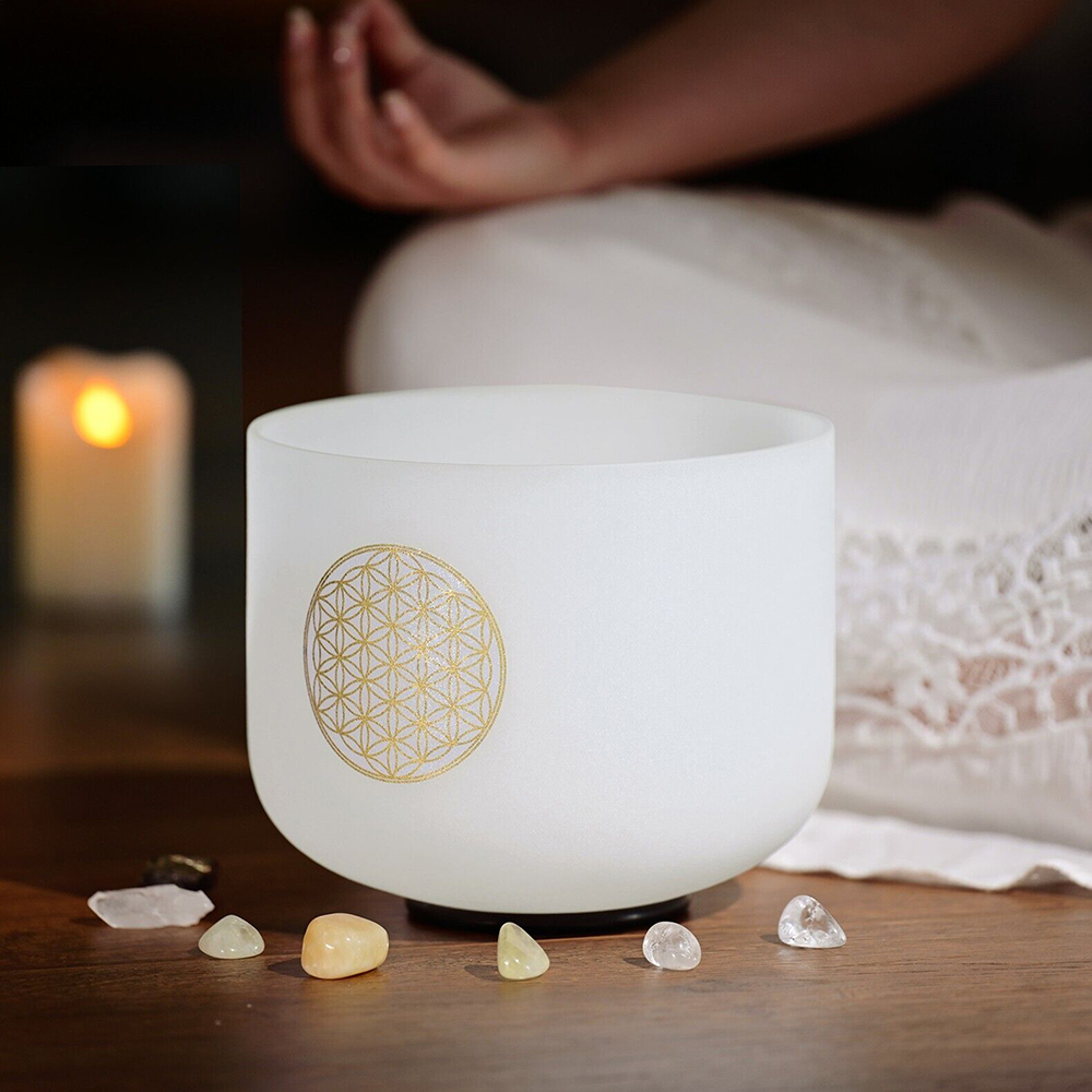 CVNC 528 hertsi 8 tuuman kukka-aihe huurrelasinen kristalliäänimalja meditaatioon