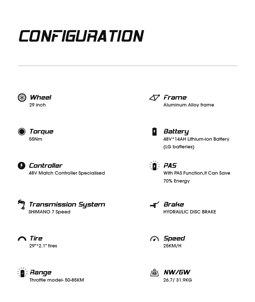 | Rungon materiaali | alumiiniseos | Rengas | 29*2.1”-koon leveät renkaat |