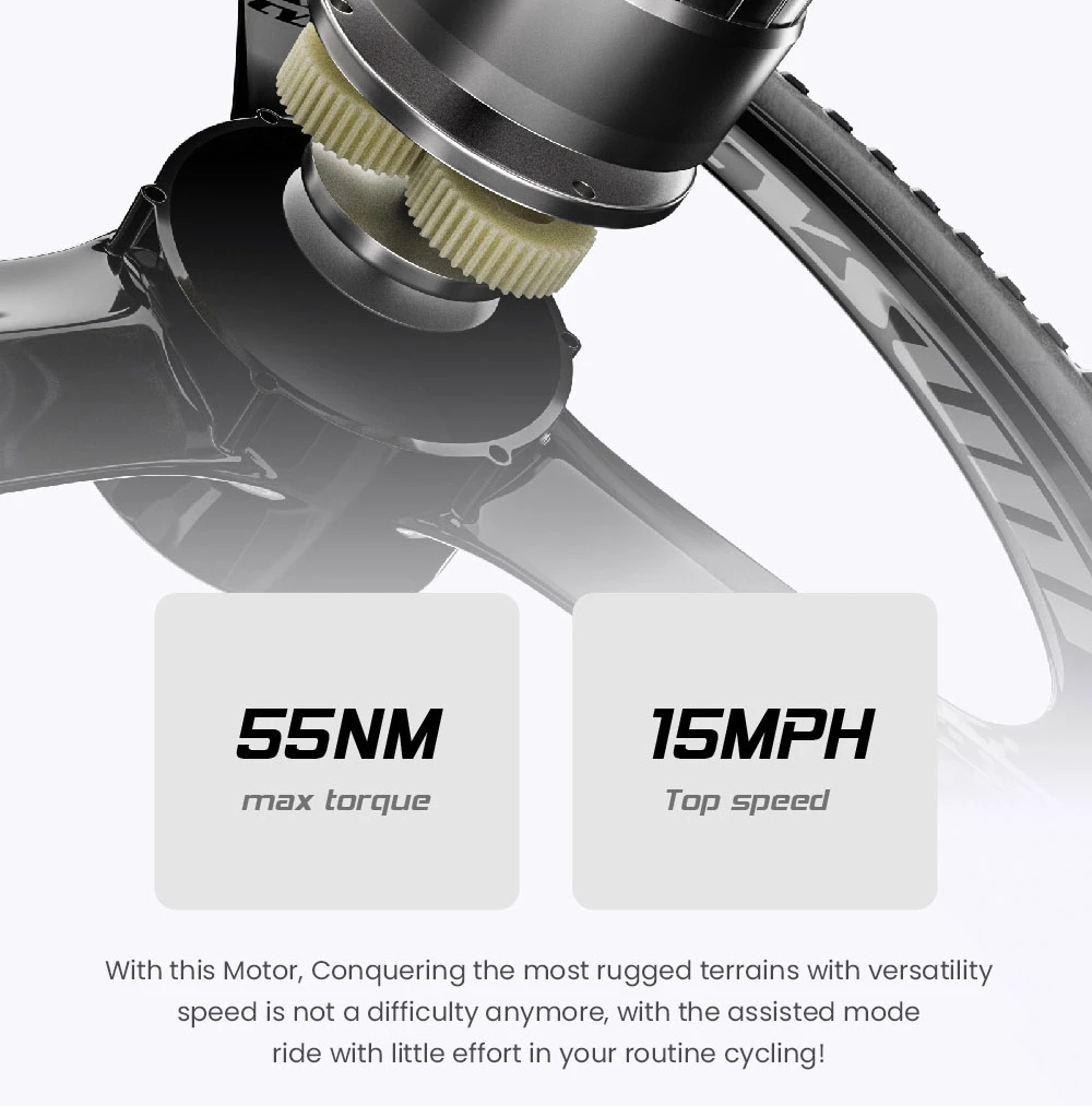 - 500W 48V takamoottori ja enintään 55N.M vääntömomentti mäkisiin olosuhteisiin