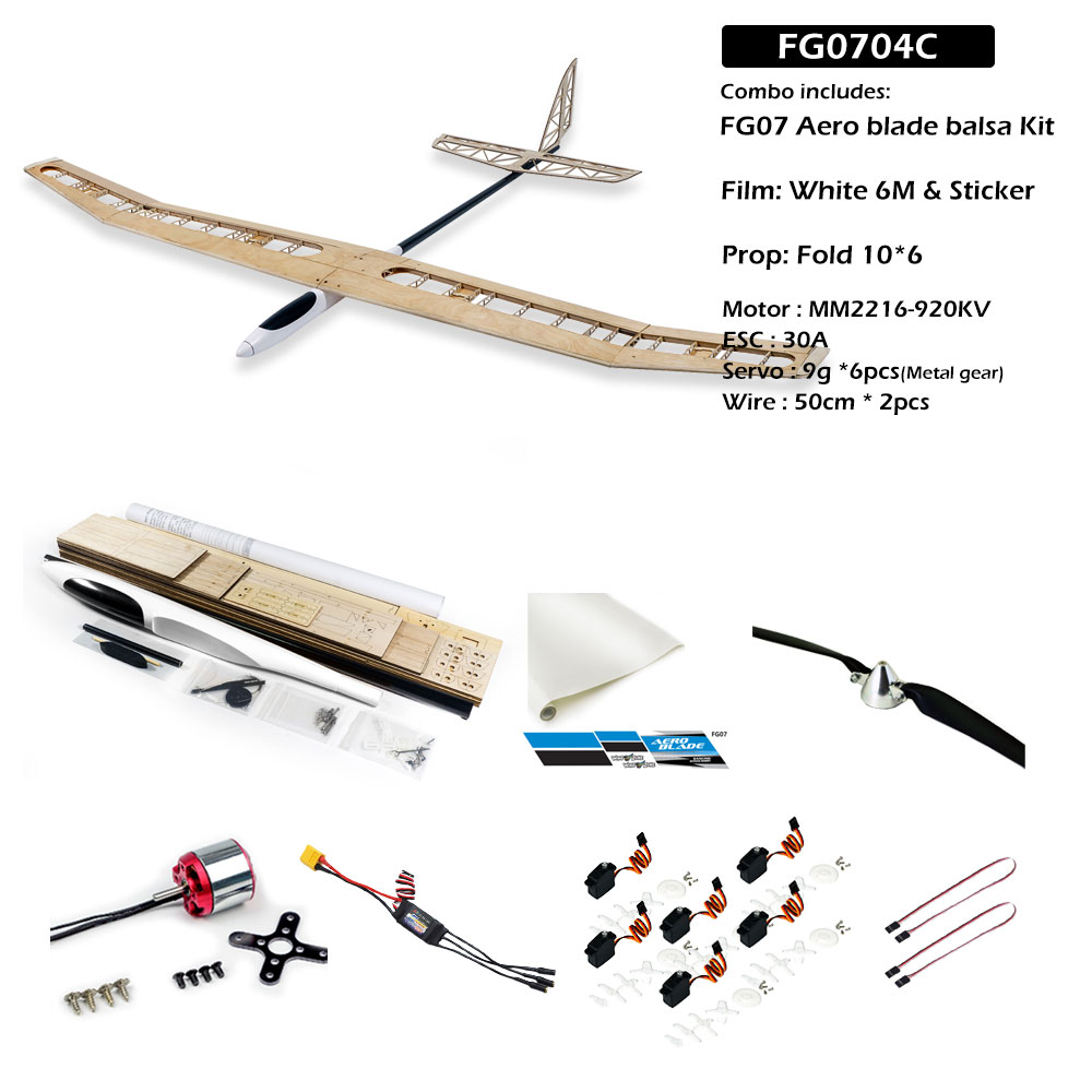 Dancing Wings Hobby FG07 Aero Blade on suuri balsa-kit-rakennussarja kokeneille RC-lennokkiharrastajille. Kevyt rakenne, pitkä 1995mm siipiväli ja monipuoliset varustevaihtoehdot tekevät tästä koneesta hyvän alustan rauhalliseen liitoon ja tarkkaan ohjattavuuteen.