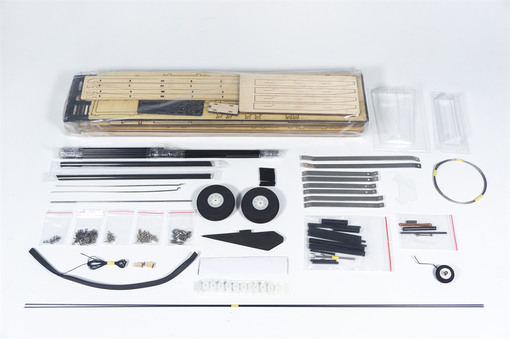 Huom.: Servot, moottori, potkuri, nopari, akku, lähetin, vastaanotin, kuljetuspussi ja liima eivät sisälly toimitukseen.