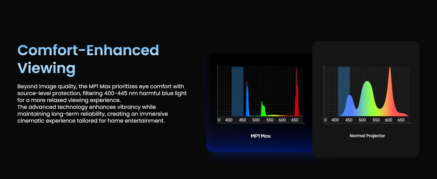Tuottaa BT.2020 110% väriavaruuden ja minimaalisen vääristymän (H/V ≤0.5%) elokuvamaiseen tarkkuuteen.