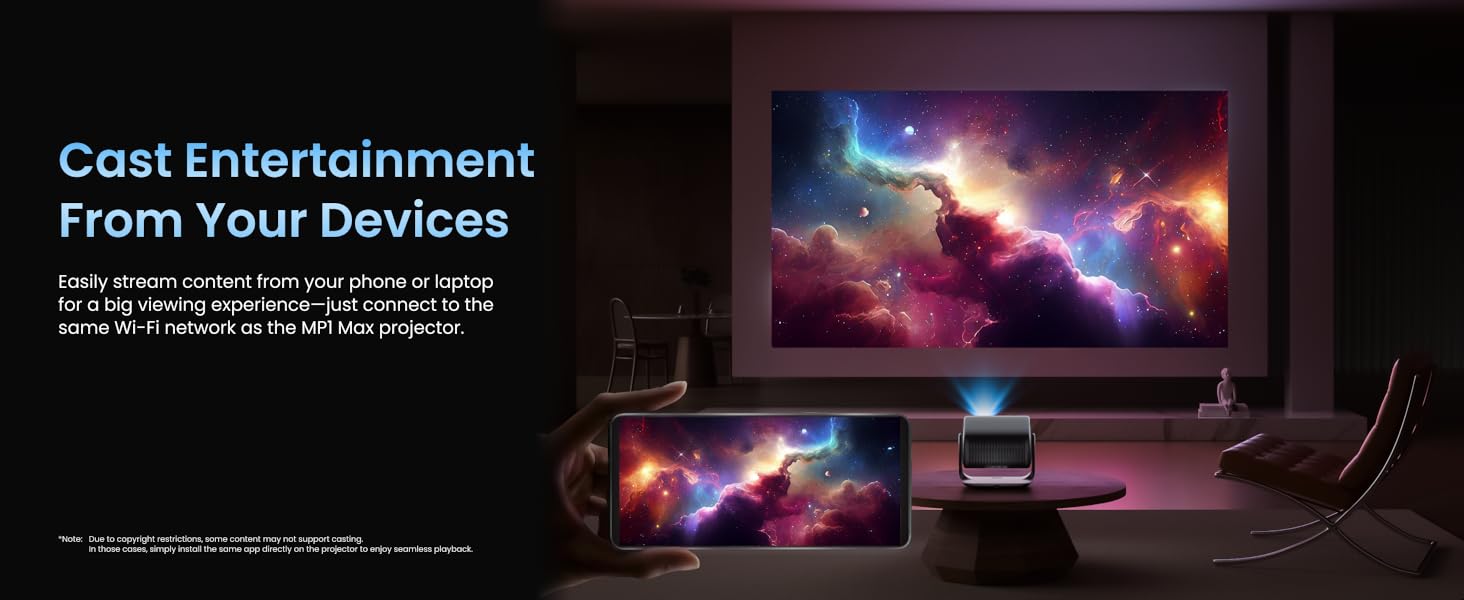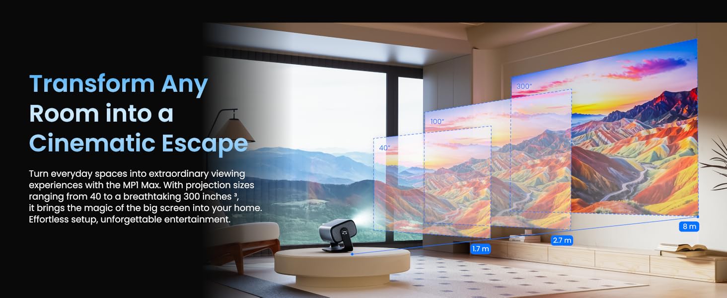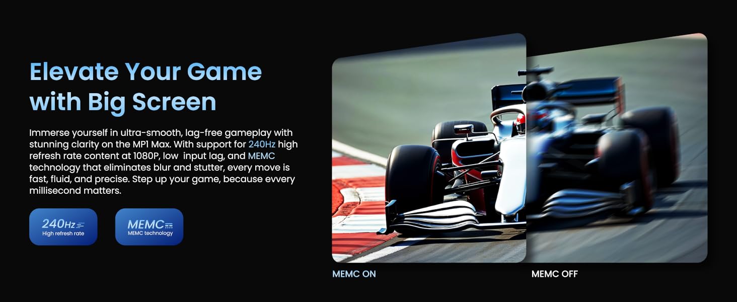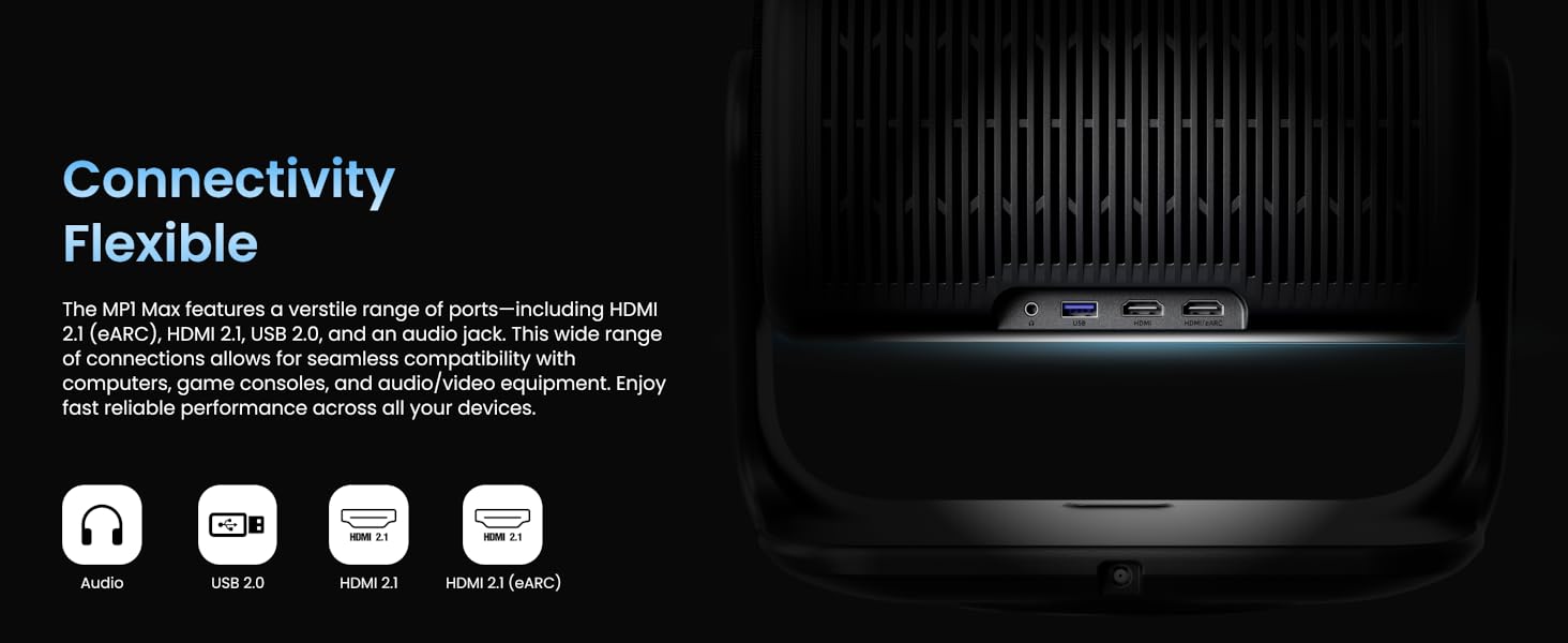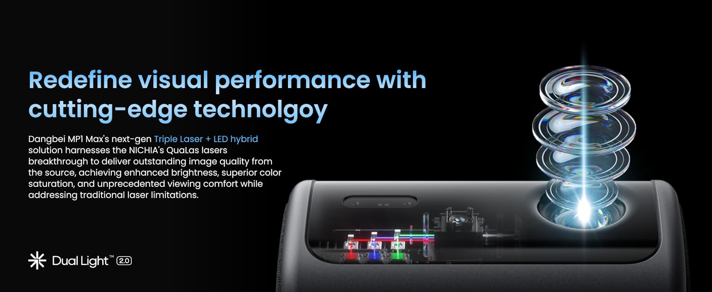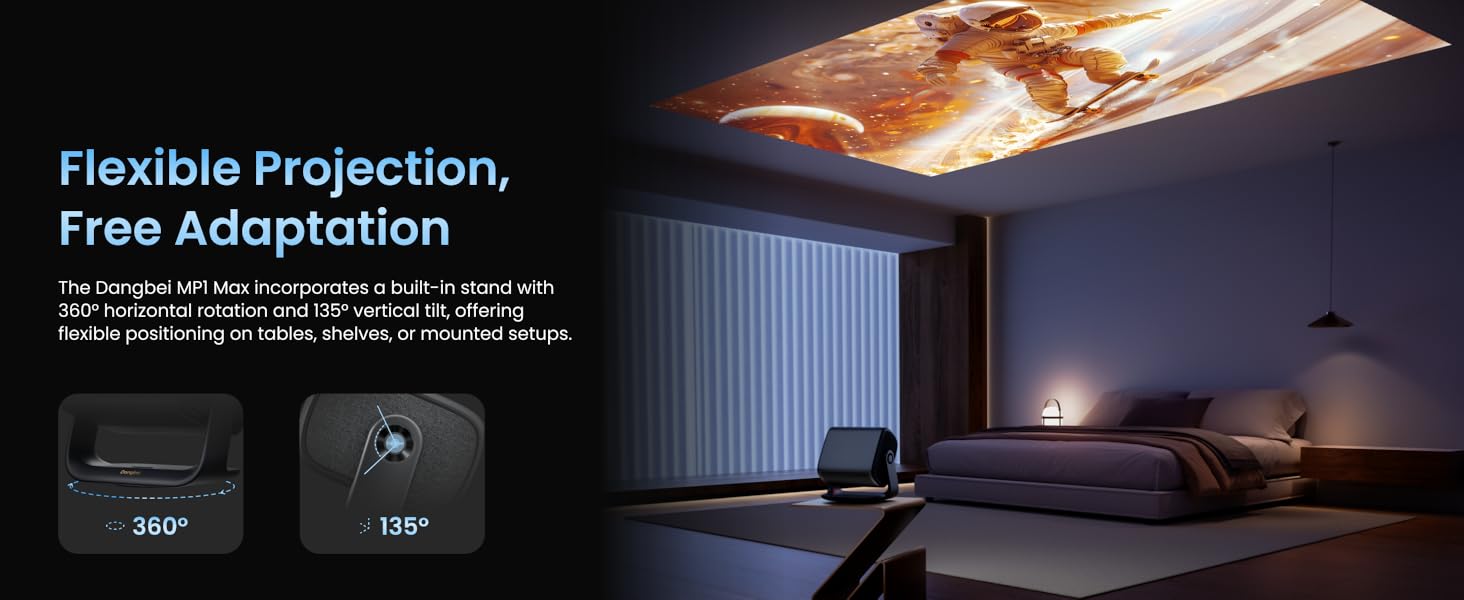 Dangbei MP1 Max on 4K-projektori, joka tuottaa laajan BT.2020 110% väriavaruuden ja 3100 lm ISO-kirkkauden. Reaaliaikainen automaattitarkennus, trapetsikorjaus ja esteiden väistö helpottavat käyttöönottoa, ja 360° kääntyvä alusta mahdollistaa joustavan sijoittelun. Kaksikanavainen 12W*2 äänentoisto ja hiljainen jäähdytys viimeistelevät katselukokemuksen.
