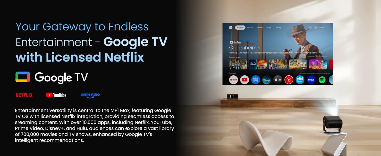 Ultimea poseidon e40 1080p lcd projektori 1000 ansi lumenia android tv 11.0 netflix-sertifioitu