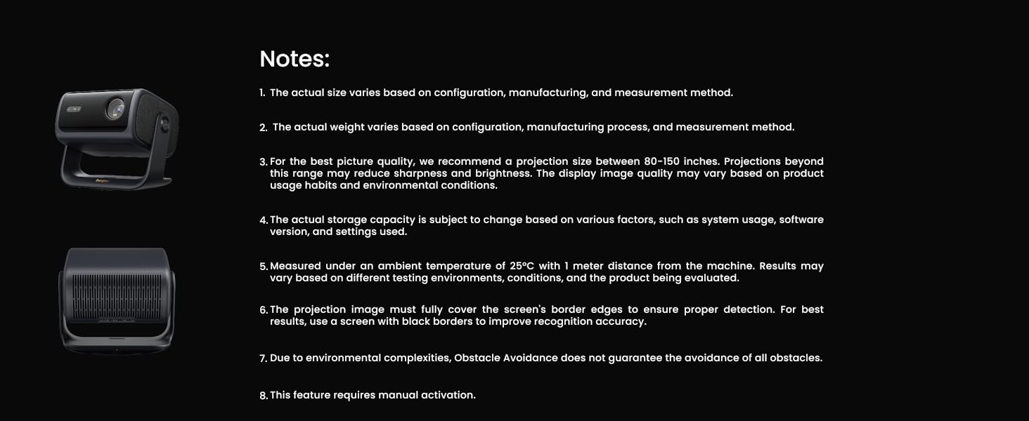 | Kuvan käsittely | Automaattinen silmiensuojaus: tuettu Reaaliaikainen automaattitarkennus: tuettu Reaaliaikainen automaattinen trapetsikorjaus (keystone): tuettu Älykäs esteiden väistö: tuettu Älykäs kehyksentunnistus: tuettu Ympäristön valon mukautus: tuettu Liikekompensointi/MEMC: tuettu HDR: HDR10, HDR10+, HLG 3D-purku: tuettu 4K-purku: H.265-HEVC/H.264-AVC/AVS2-P2/VP9 4K@60fps |