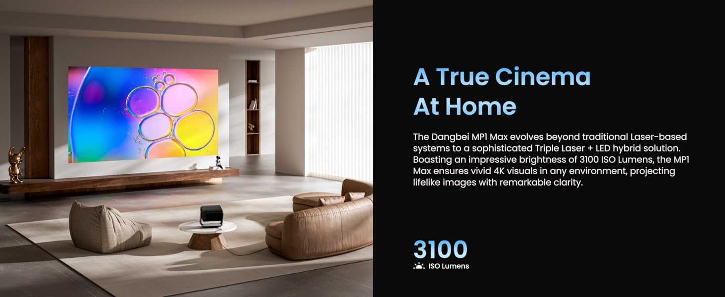Dangbei MP1 Max 4K kolmivärinen laserprojektori 3100lm HDR10+ automaattitarkennus 360-asteinen
