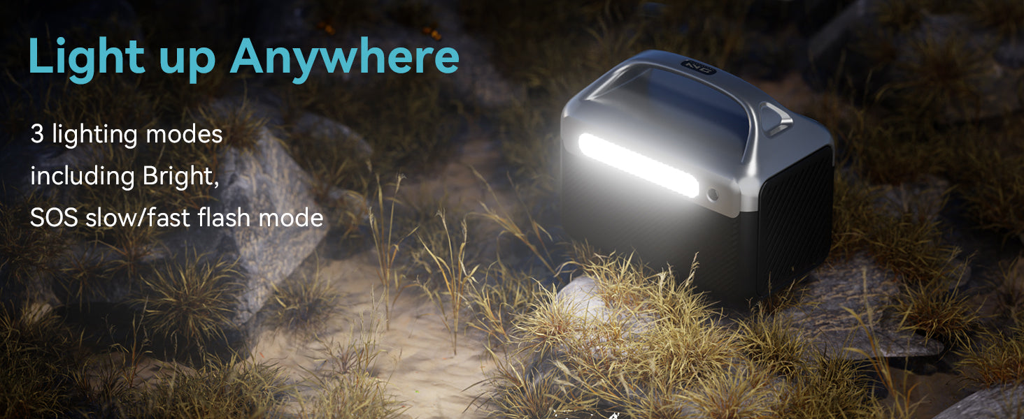 - Kompakti mutta tehokas kannettava virtalähde 300W (600W huipputeho) -vaihtosuuntaajalla ja 179.2Wh LiFePO4-akulla.