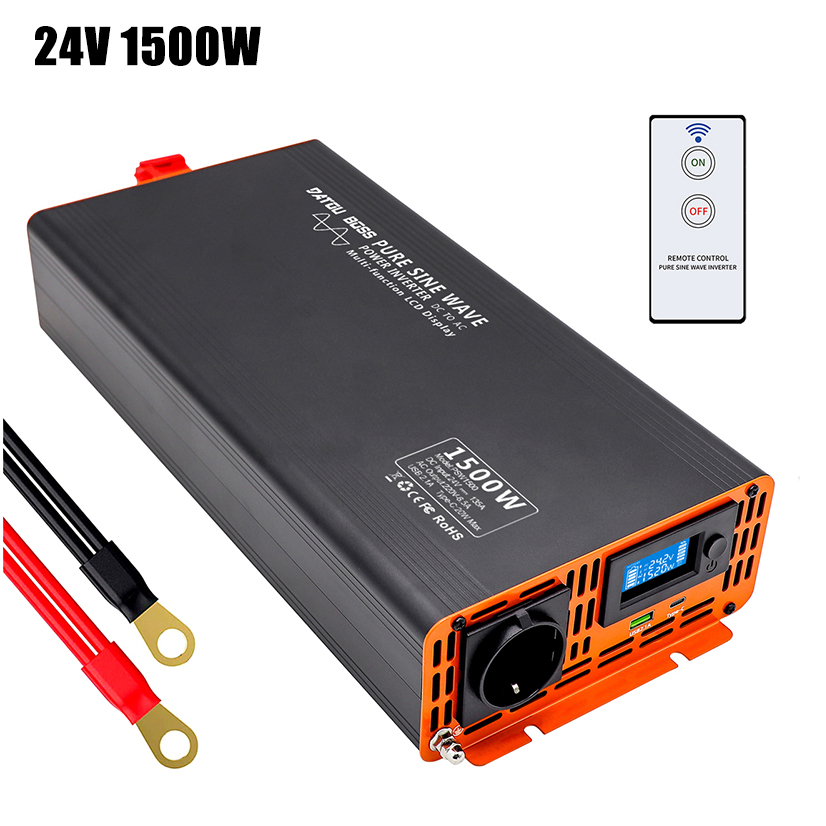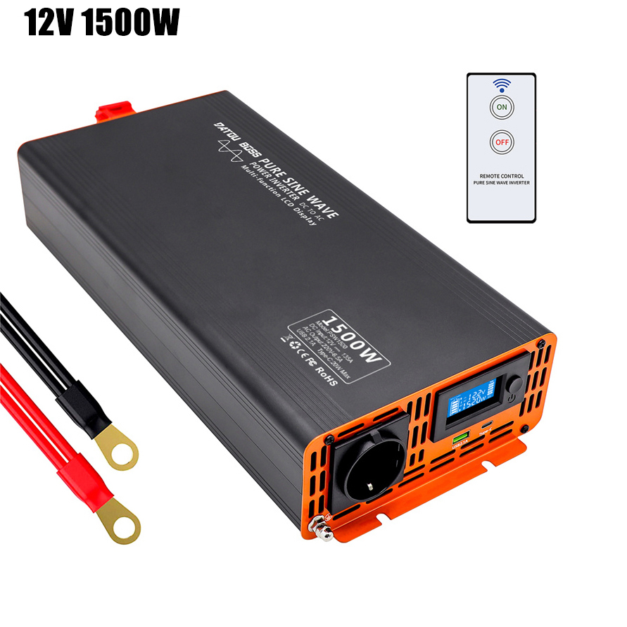 DATOUBOSS puhdas siniaaltoinvertteri 1500W 12V/24V 230V EU-pistorasiat LCD-näyttö matkailuautoon kotiin