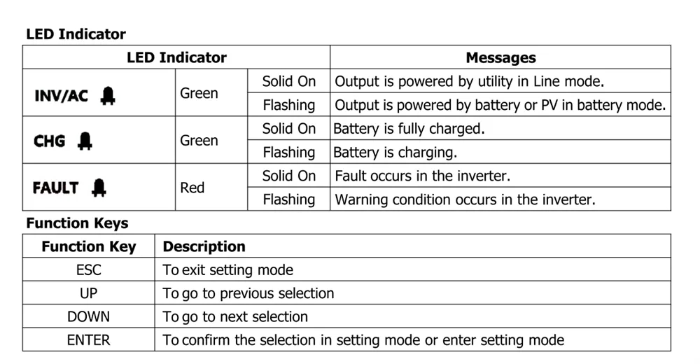 2. Tämä on laajajännitteinen aurinkoinvertteri. Jos aurinkoinvertteriä käytetään ilman ulkoista akkua, aurinkopaneelien jännitteen on käynnistyäkseen oltava yli 150V, jotta invertteri toimii normaalisti. Ulkoisen akun kanssa laite toimii, kun jännite on 120V.