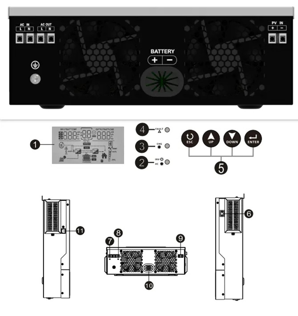 - Sisäänrakennettu jopa 80A MPPT-aurinkolataus jopa 3000W aurinkopaneeliteholle